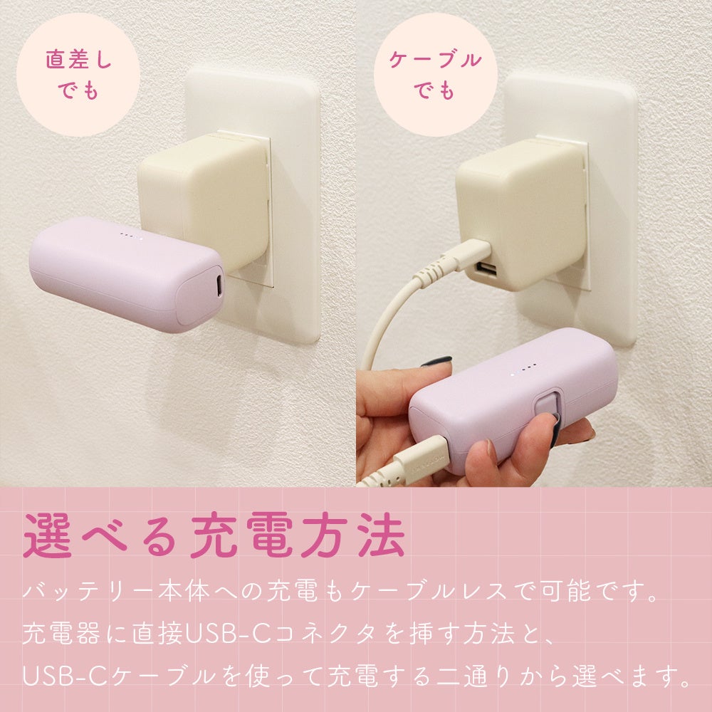 MOTTERU 持ち運び便利!USB-Cコネクタが一体になった5,000mAhのコンパクトモバイルバッテリーが新登場