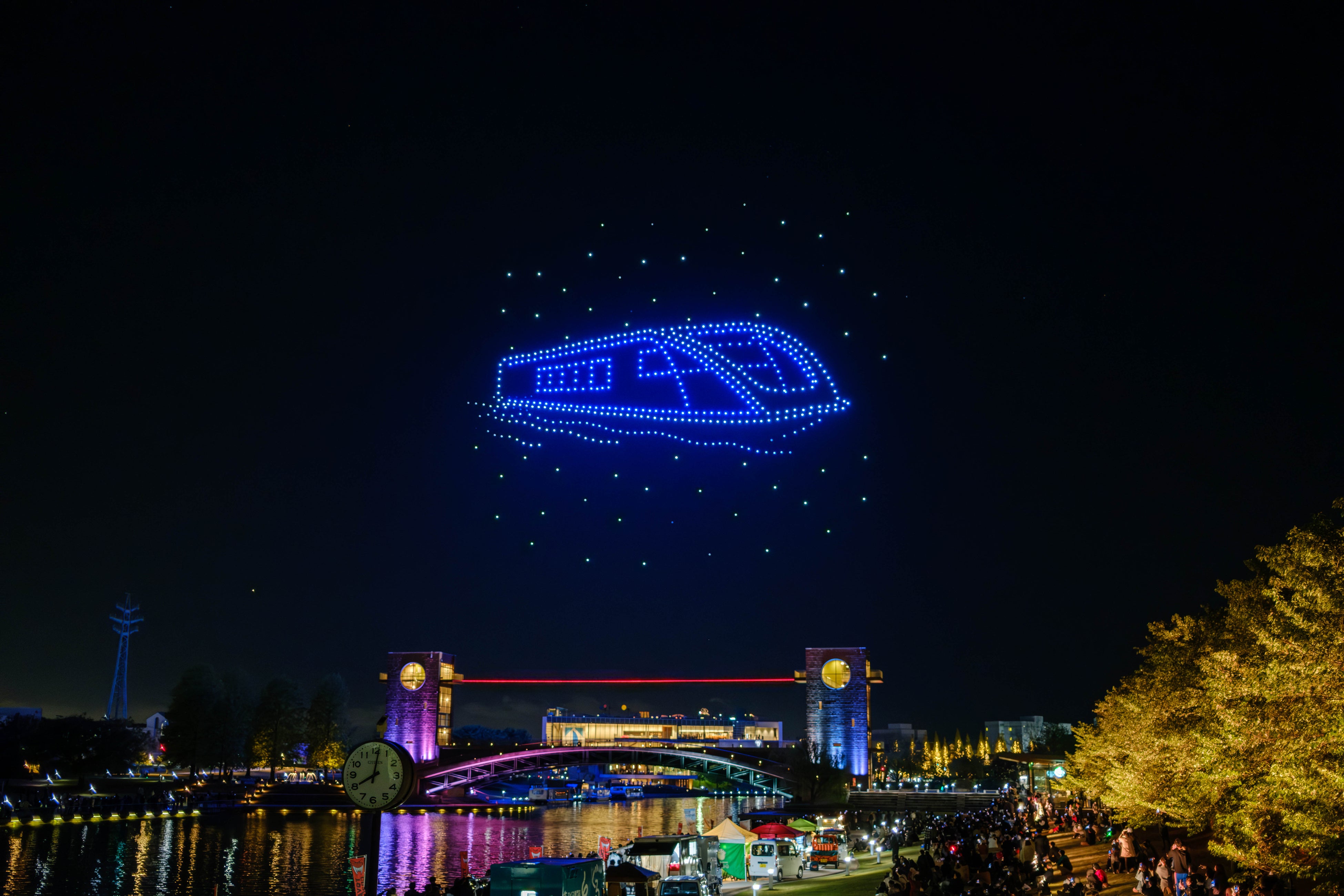 富山グラウジーズ×富岩運河環水公園 初のドローンショー「TOYAMA Night Canvas」を開催し、観覧者7,000名から大きな歓声