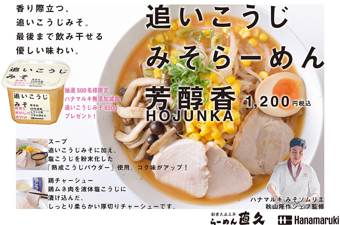 【ハナマルキ×直久のコラボレーション】ハナマルキ・追いこうじみそを使用した「追いこうじみそラーメン・芳醇香(ほうじゅんか)」プロジェクト概要