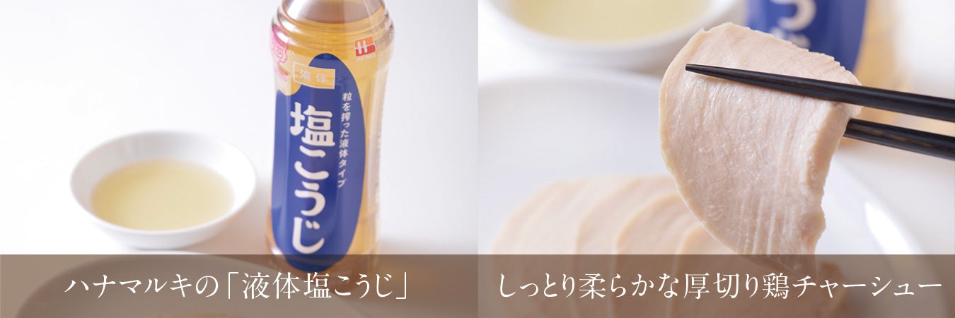 ■チャーシューは「液体塩こうじ」使用でジューシーに、スープに「熟成こうじパウダー」使用でコク味を