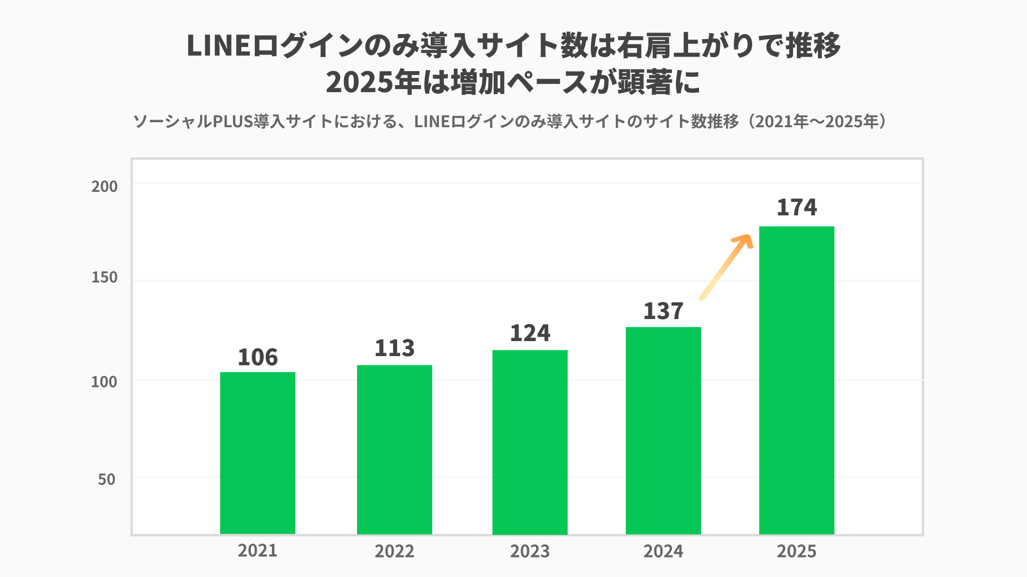 また、「LINEログインのみ」を導入するサイト数は、本調査を開始した2021年以降、右肩上がりで増加しています。