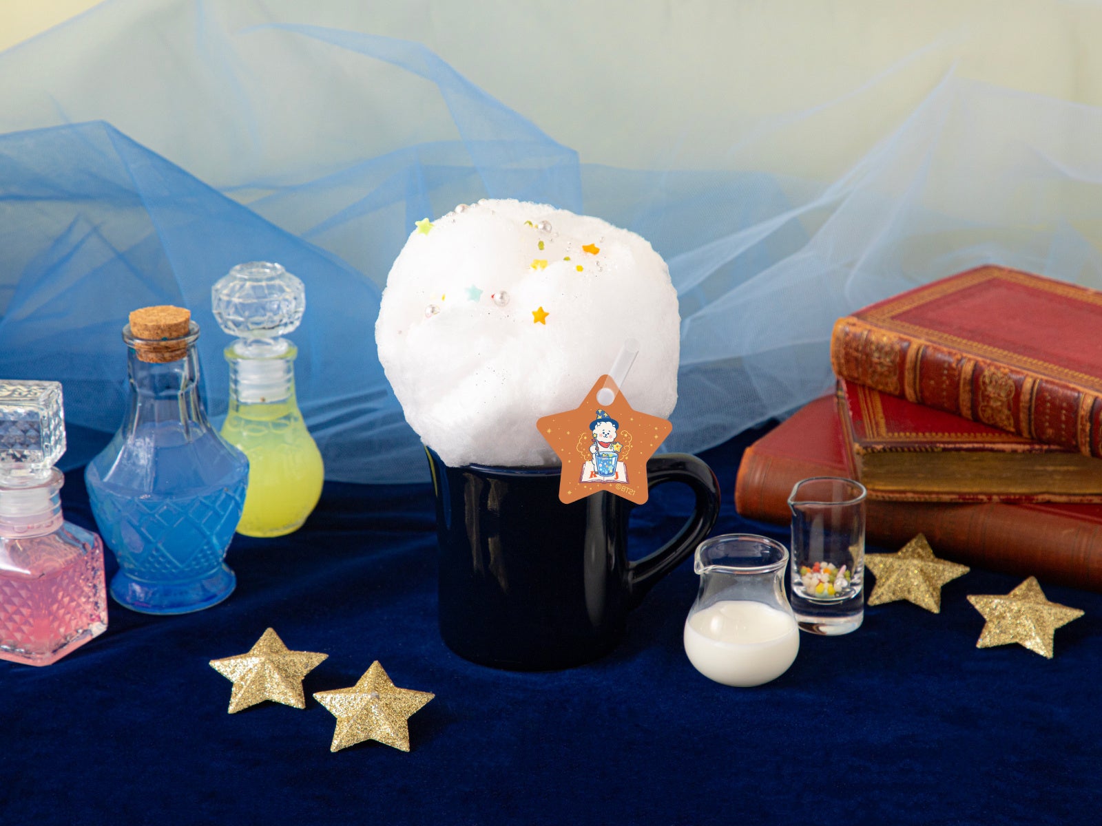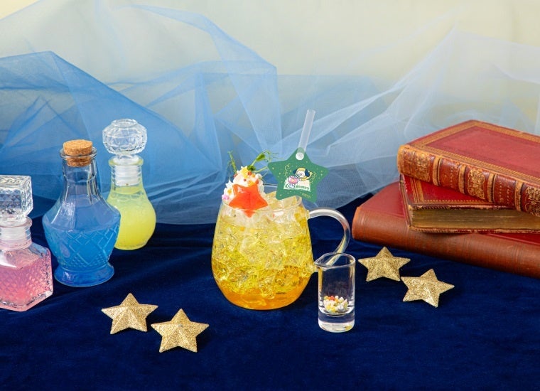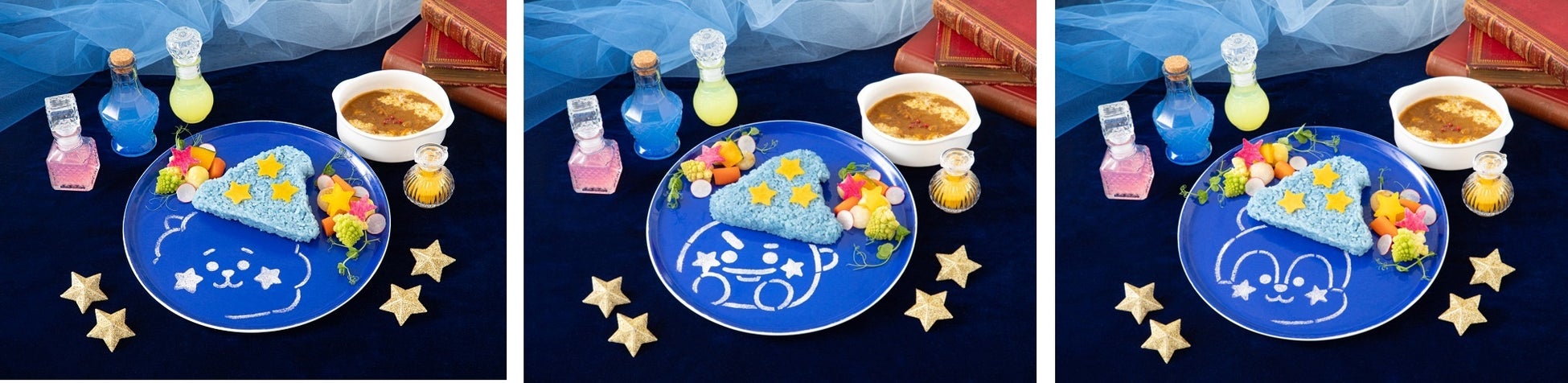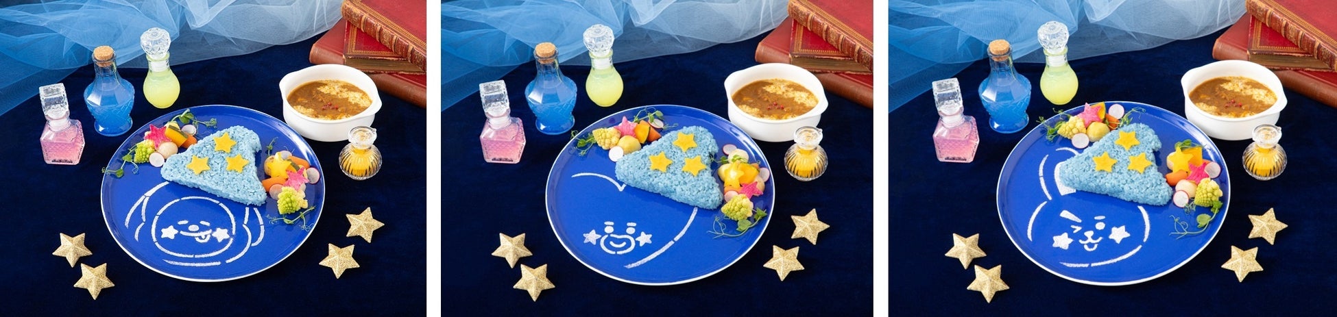 BT21の仲間たちのレシピをイメージしたキラキラした7種のドリンクが登場します。星形のナタデココやお好みでスパイスをトッピングして完成させる楽しいドリンクメニュー、それぞれBT21の仲間たちのステンシルをセレクトできる魔法の帽子型のごはんに魔法の鍋に入ったカレーをかけて食する魔法のワンプレート、ハムなどの具材に目玉焼きがのったクロックマダム、お好みで別添えの爽やかなトマトソースで味変も出来るホワイトクリームのスパゲティーグラタンなどのフードメニュー、わたあめがトッピングされたパンケーキや星のチョコステッキがトッピングされたパフェなどカラフルでフォトジェニックなメニューをご用意いたしました。