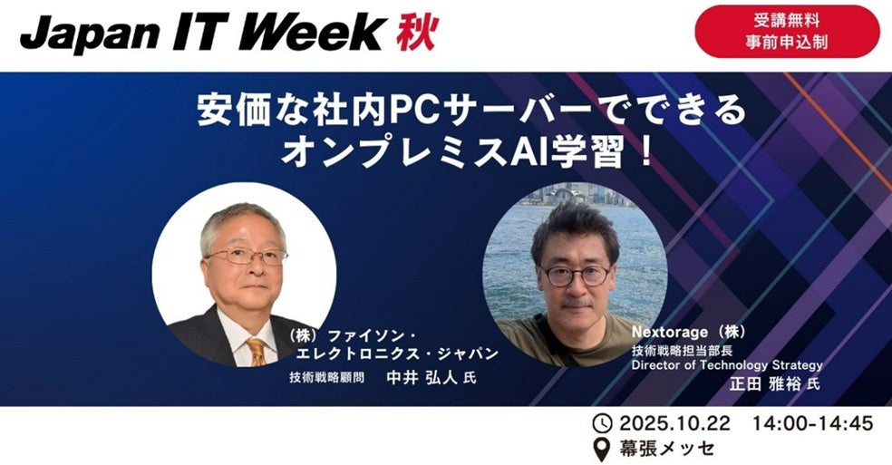 Nextorage株式会社(ネクストレージ株式会社、代表取締役:本多 克行、神奈川県川崎市)は、2025年10月22日に開催される Japan IT WEEK 2025 秋 に出展することをお知らせいたします。
