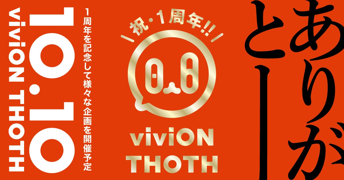 株式会社viviONの手掛ける書籍出版レーベル『viviON THOTH(ヴィヴィオン トート)』は、多くの作家さま、読者さま、書籍販売店をはじめとした関係者の皆さまに支えていただき9月16日に創刊1周年を迎えることが出来ました。