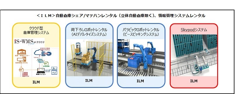 なお、「Techrum(テクラム)」へILMが新たに参画し、ILMが提供するマテハンロボット及びWMSも下図の通り利用可能となります。立体自動倉庫のシェアリングサービスと同様に、設備準備のための初期費用や固定費がかからずに最新の自動化システムの導入を進めることができます。