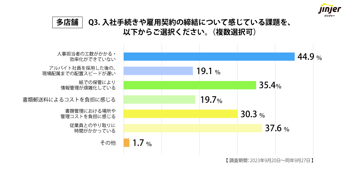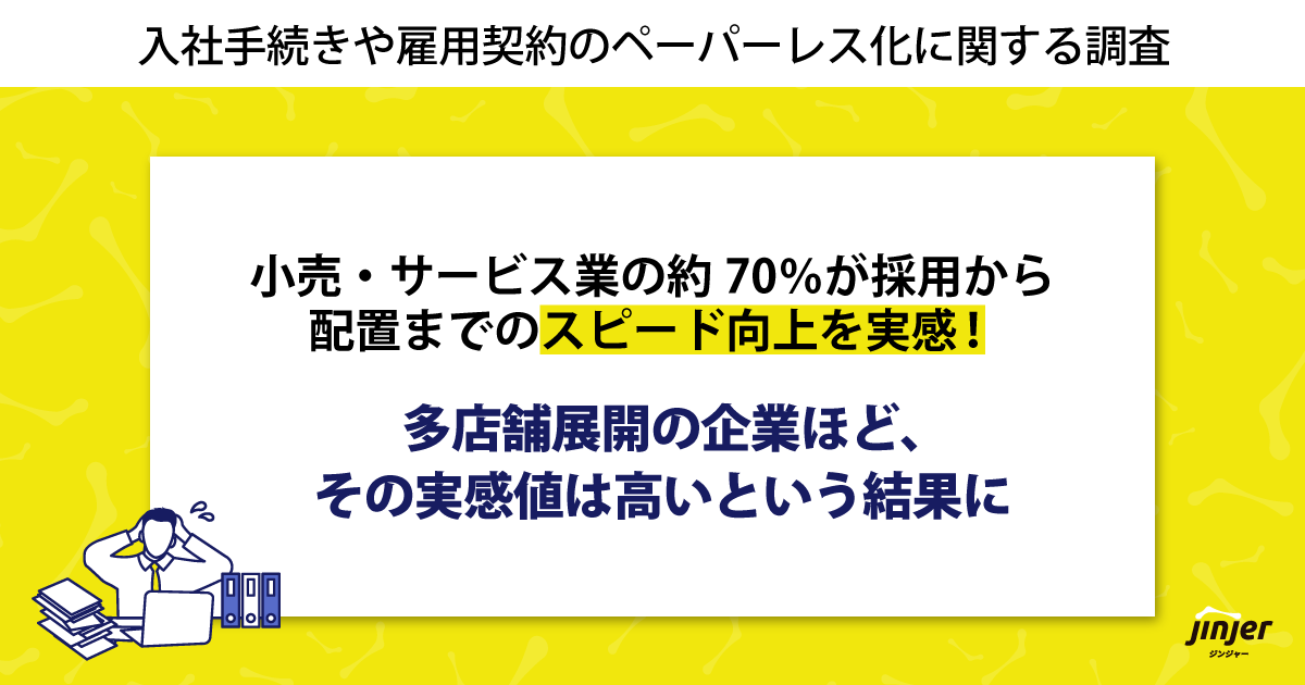 ー入社手続きや雇用契約のペーパーレス化に関する調査ー小売・サービス業の約70%が、採用から配置までのスピード向上を実感。多店舗展開の企業ほど、その実感値は高いという結果に。