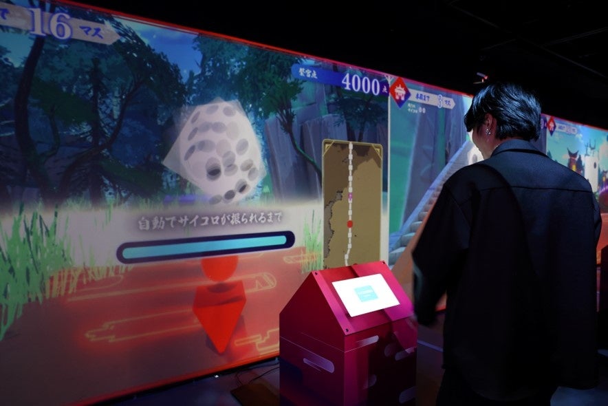 地下1階のイベントスペースで展開する、プロジェクションマッピングを活用した床と壁全面による没入感たっぷりのすごろくです。