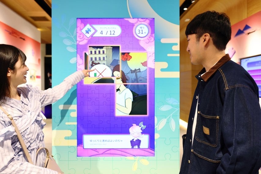 1階のショールームで展開するタッチパネル操作のパズルゲームです。難易度の違う「社会課題ぱずる」と「つなぐチカラぱずる」を通じて、楽しみながら社会課題を知り、その解決手段も学ぶことができます。