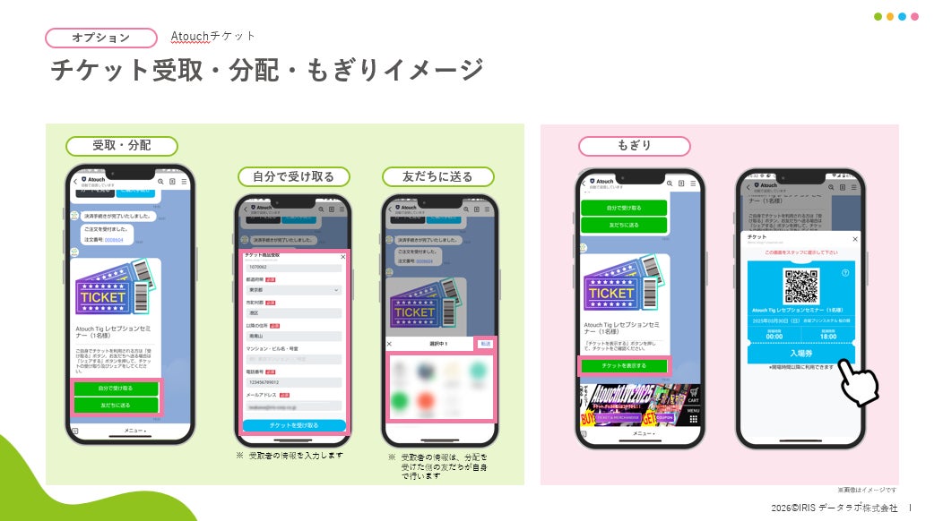 IRISデータラボ株式会社(東京都港区南青山、代表取締役:安達教顕)は「Atouchチケット」を2026年2月1日に正式にリリースしました。本サービスより、LINEのトーク画面内でチケット購入から当日のもぎりまでをワンストップで行うことが可能になりました。