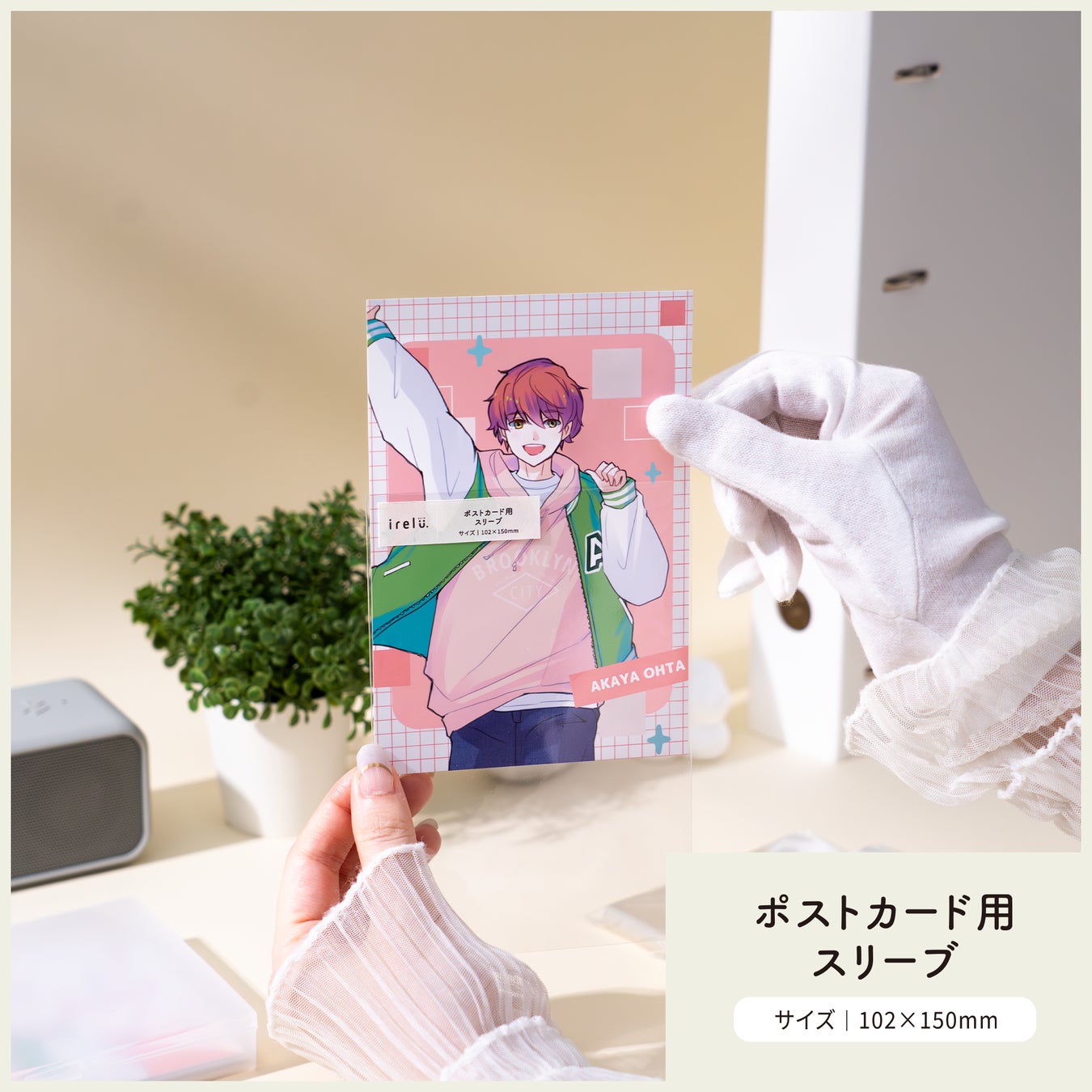 「irelu スリーブ」は、高透明のOPP素材を使用し、グッズの色彩や細部を損なうことなく美しく保護します。いずれも「irelu バインダーリフィル」のポケット内寸にぴったり収まるよう設計