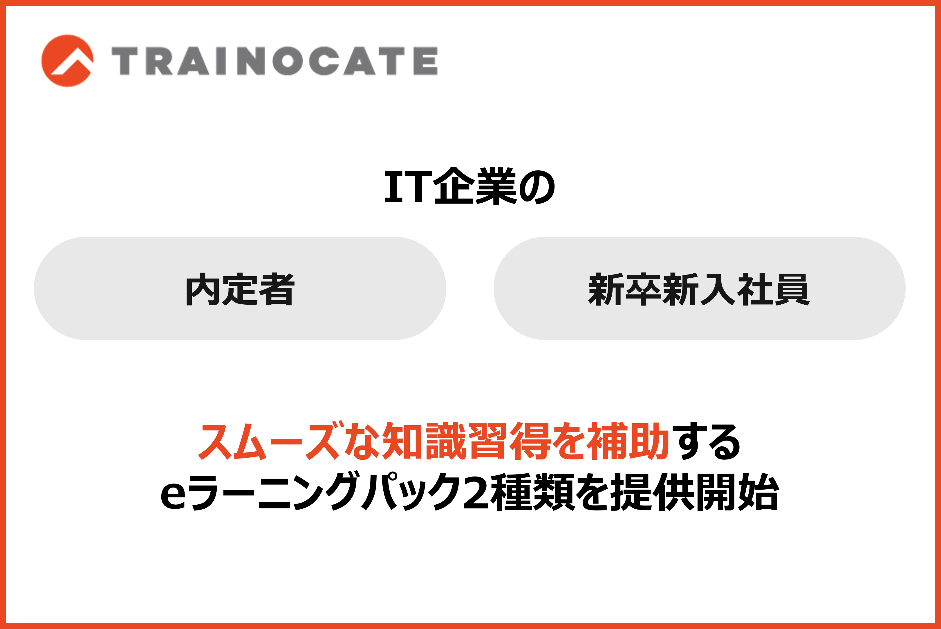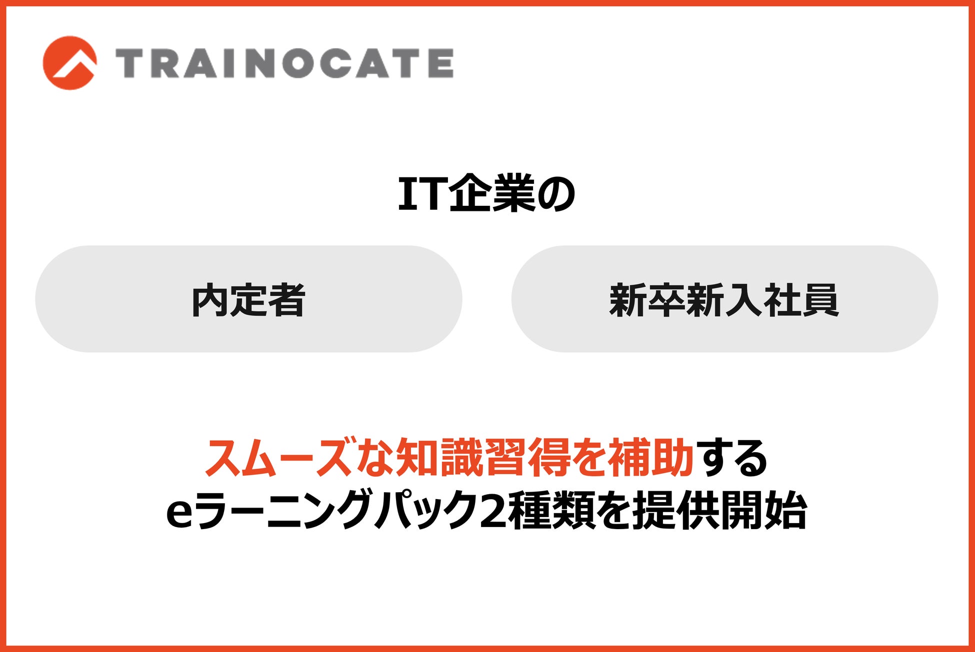 人材育成のトレノケート株式会社(本社:東京都新宿区、代表取締役社長:早津 昌夫、以下、トレノケート)は、IT企業の新卒新入社員や内定者を対象として、2種類のeラーニングパックの提供を開始しました。