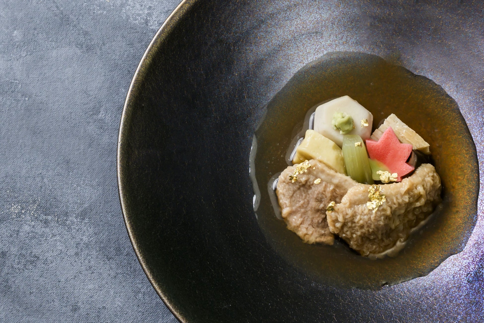金沢の郷土料理として親しまれる「治部煮」を、鴨肉とすだれ麩、旬の加賀野菜とともに丁寧に仕立てました。葛粉でとろみをつけた旨みたっぷりの出汁が、素材の持ち味を引き立て、心まで温まる逸品に。ホテル金沢の橋本和食料理長が出汁を取るところから素材にこだわりました。