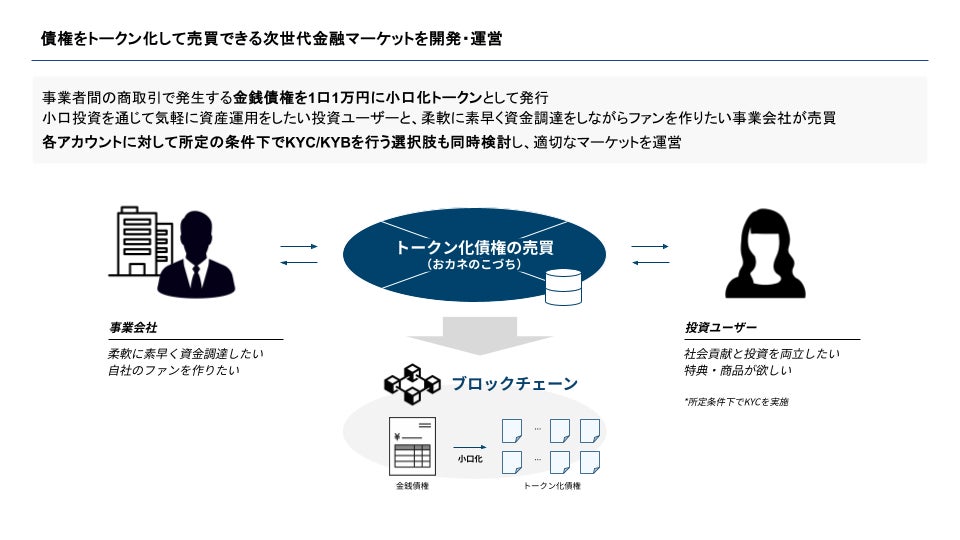 金銭債権のトークン化を起点に、スマートコントラクトによるDeFi基盤を新規構築。将来的には多様な金融商品・債権のトークン化にも展開