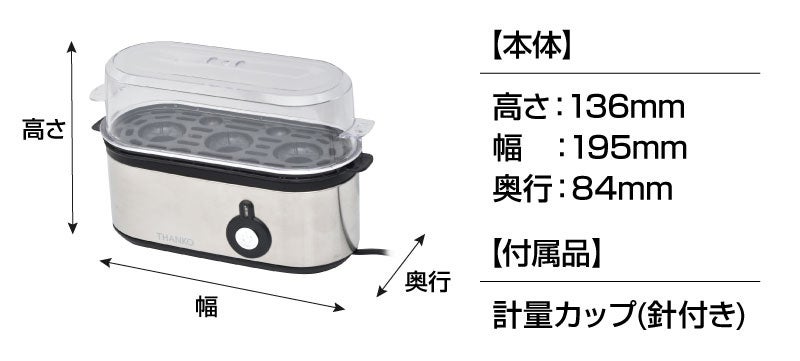 本製品は火を使わずに卓上で手軽にゆで卵が作れるエッグスチーマーです。