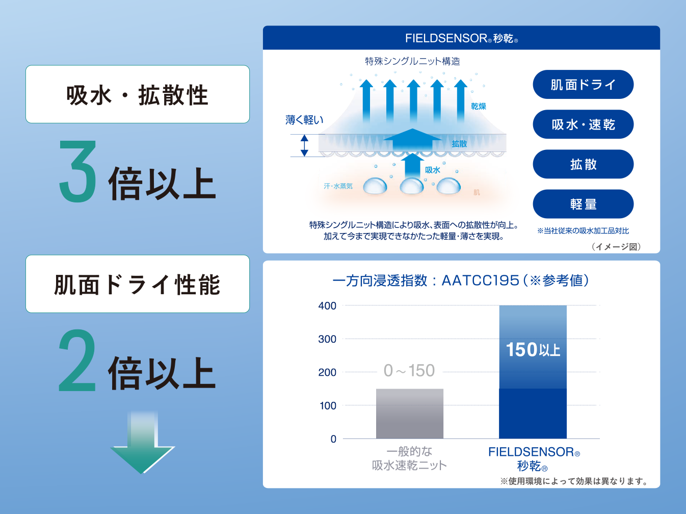※2 樹木が水分を枝や葉に吸い上げる自然原理で、太い毛細管から細い毛細管へと水分を一方向に移動させる現象