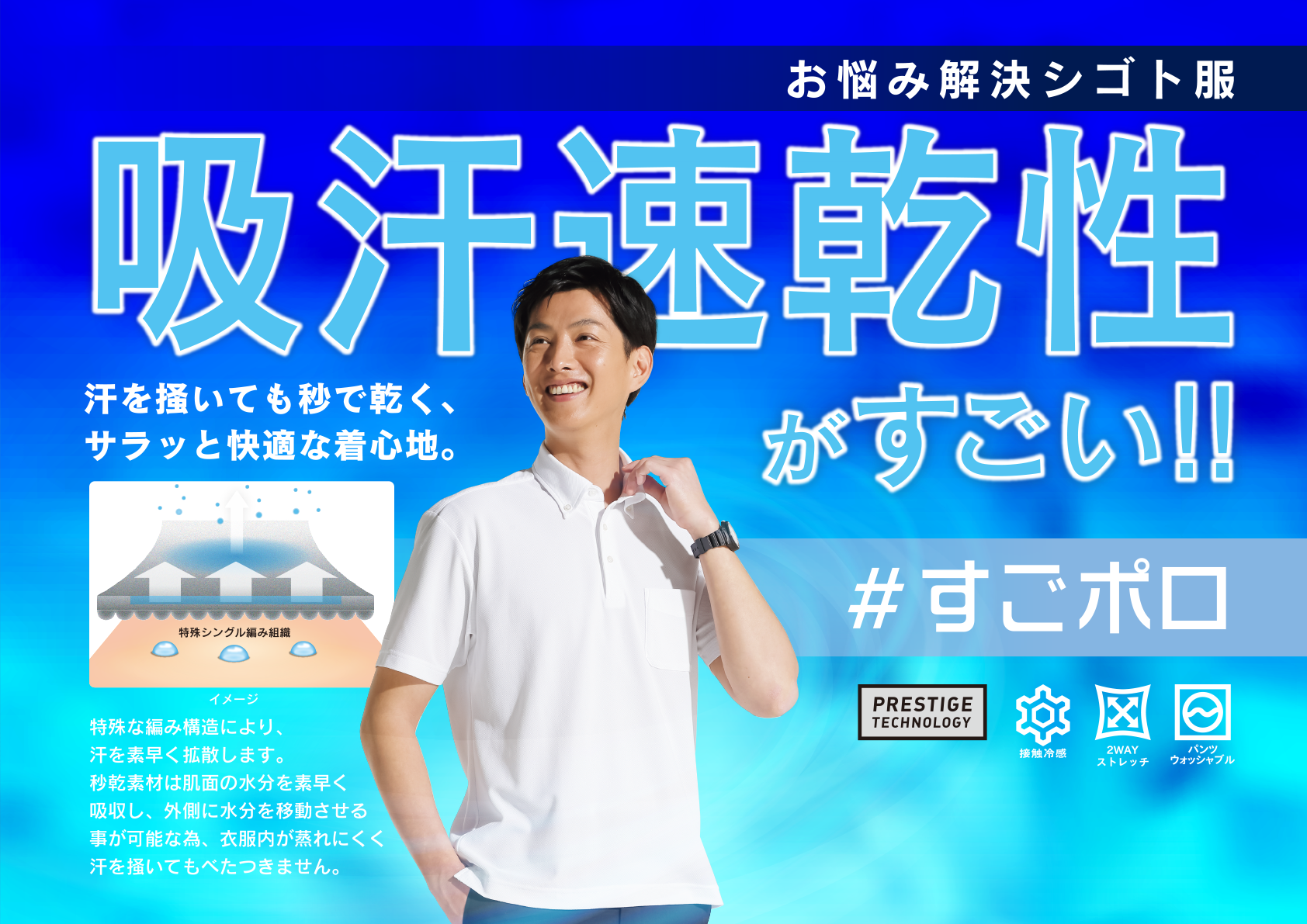 スポーツウエアのように“汗が秒で乾く”高機能ポロシャツが新たに登場!「秒乾(R)ポロシャツ」が5月22日より発売