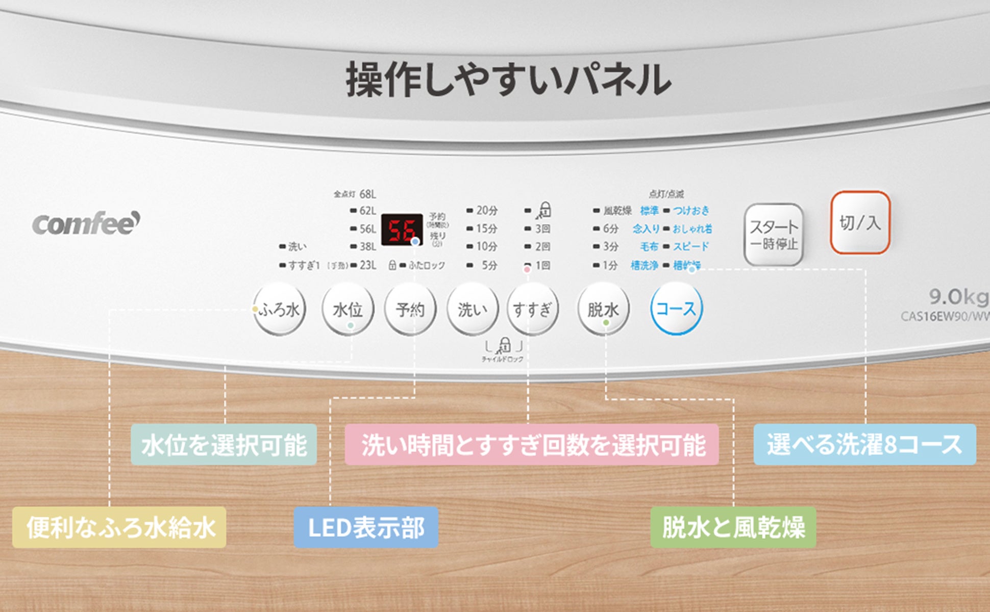 Comfee’の9KG洗濯機は、8つの洗浄コースを備え、さまざまな洗濯ニーズに対応します。衣類の種類や汚れ具合に合わせて最適なコースを選択でき、便利で効率的な洗濯を実現します。さらに、コンパクトなサイズで場所を取らず、設置場所を選ばずに使用可能です。この洗濯機は、生活をより快適にし、洗濯に新しい体験をもたらします!