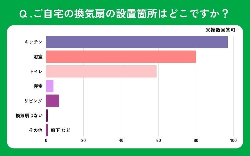 ご自宅の換気扇の設置場所はどこですか?(複数回答可能)