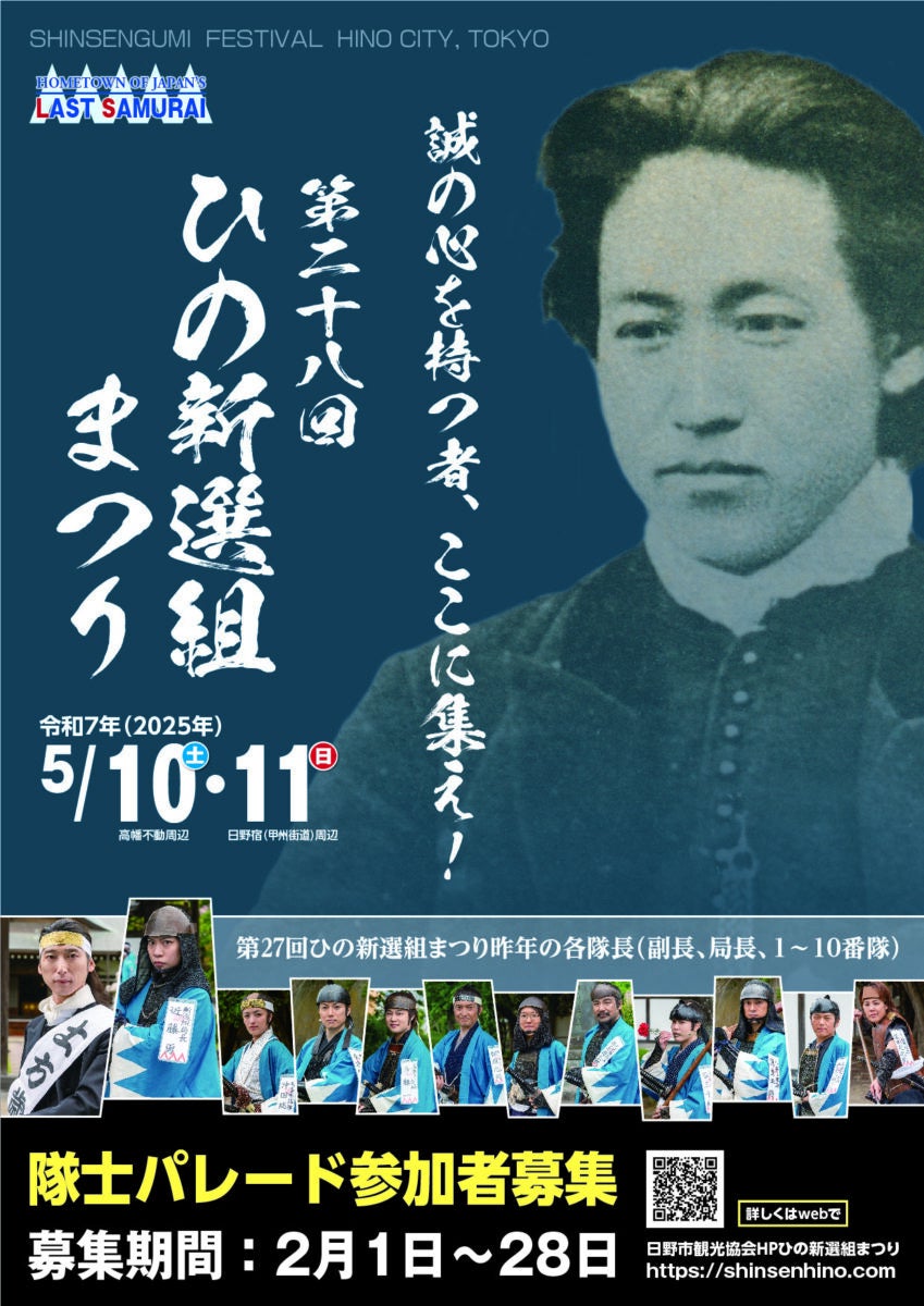 第28回ひの新選組まつり 開催決定2月1日から隊士パレード・隊士コンテストに参加する隊士を募集開始!