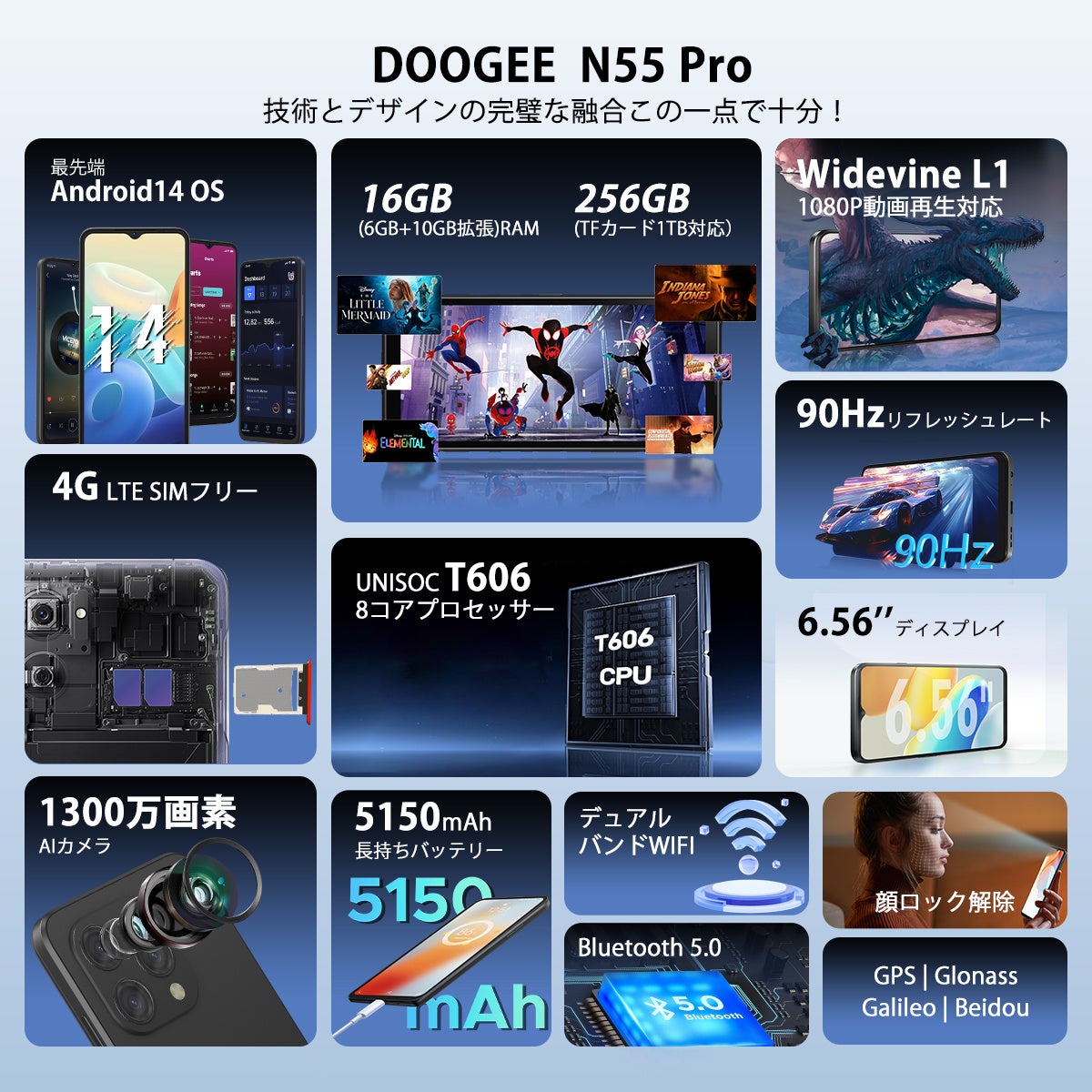 【在庫一掃セール開催中】DOOGEE N55 Pro 4G SIMフリースマホが8,000円オフで15900円!楽天お買い物マラソン&0/5のつく日でポイン6%還元