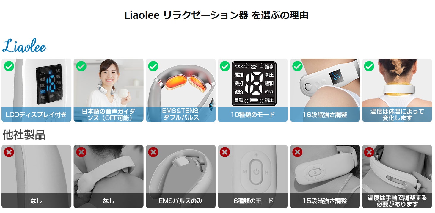 Liaolee 2024新傑作 EMS&TENS 振動 温熱 ネックリラックス
