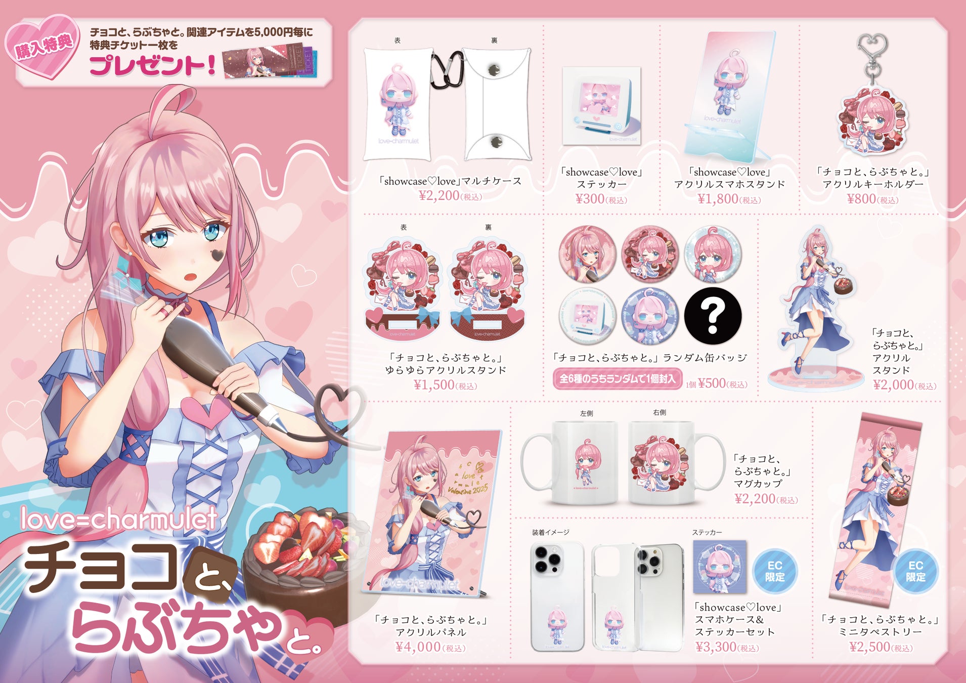 バーチャルタレント『love=charmulet』さんの公式オンラインショップ『love=charmulet official store』にて、「チョコと、らぶちゃと。」グッズ11点を販売開始!