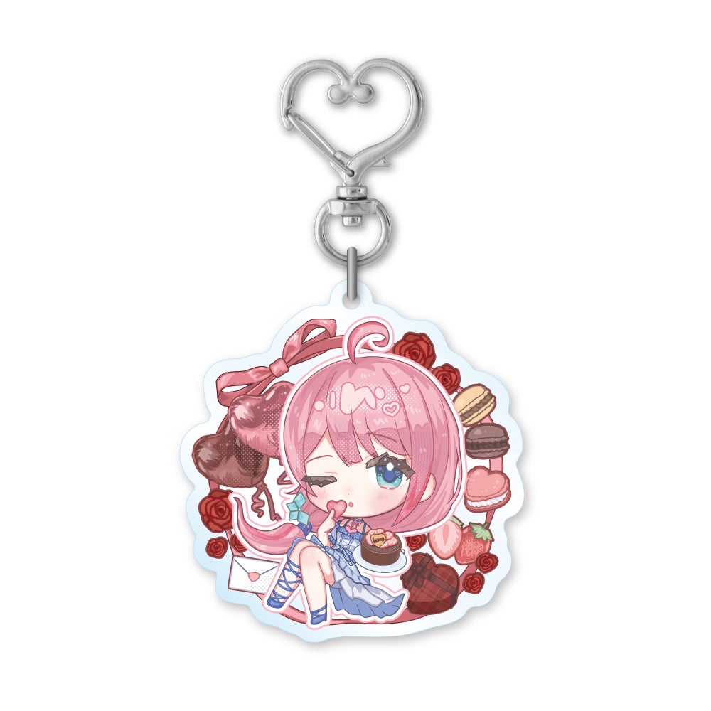 「チョコと、らぶちゃと。」用描き下ろしイラストを使用したアクリルキーホルダー。