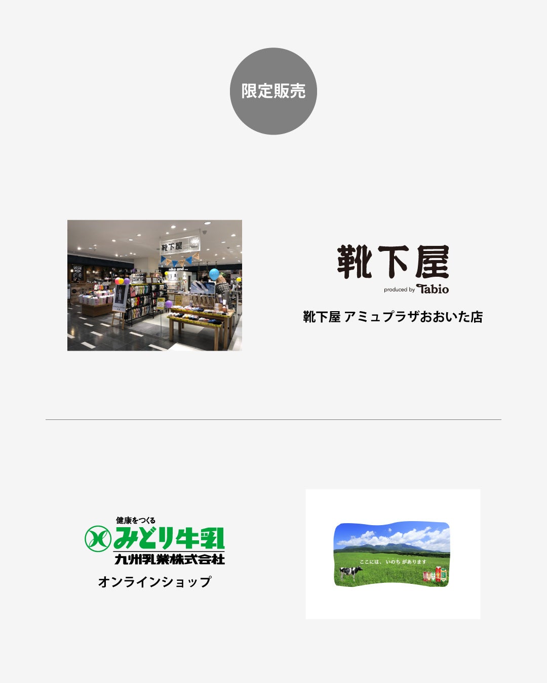 こちらの商品は、実店舗では県内に1店舗のみの「靴下屋アミュプラザおおいた店」の店頭と、通信 販売では「九州乳業オンラインショップ」だけの限定販売となります。