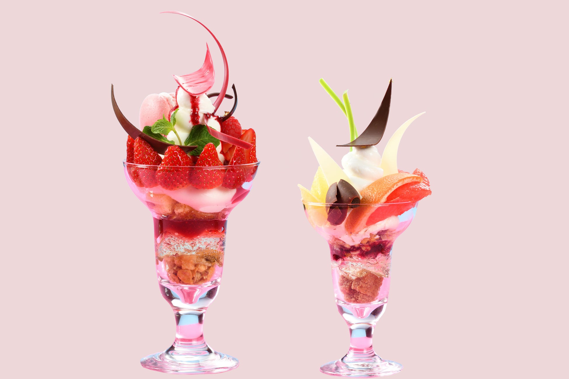 自社農園「JRフルーツパーク仙台あらはま」で収穫したフルーツを中心に使用したパフェやタルト。パフェは普通サイズと迫力あるジャンボパフェをご用意いたします。 |