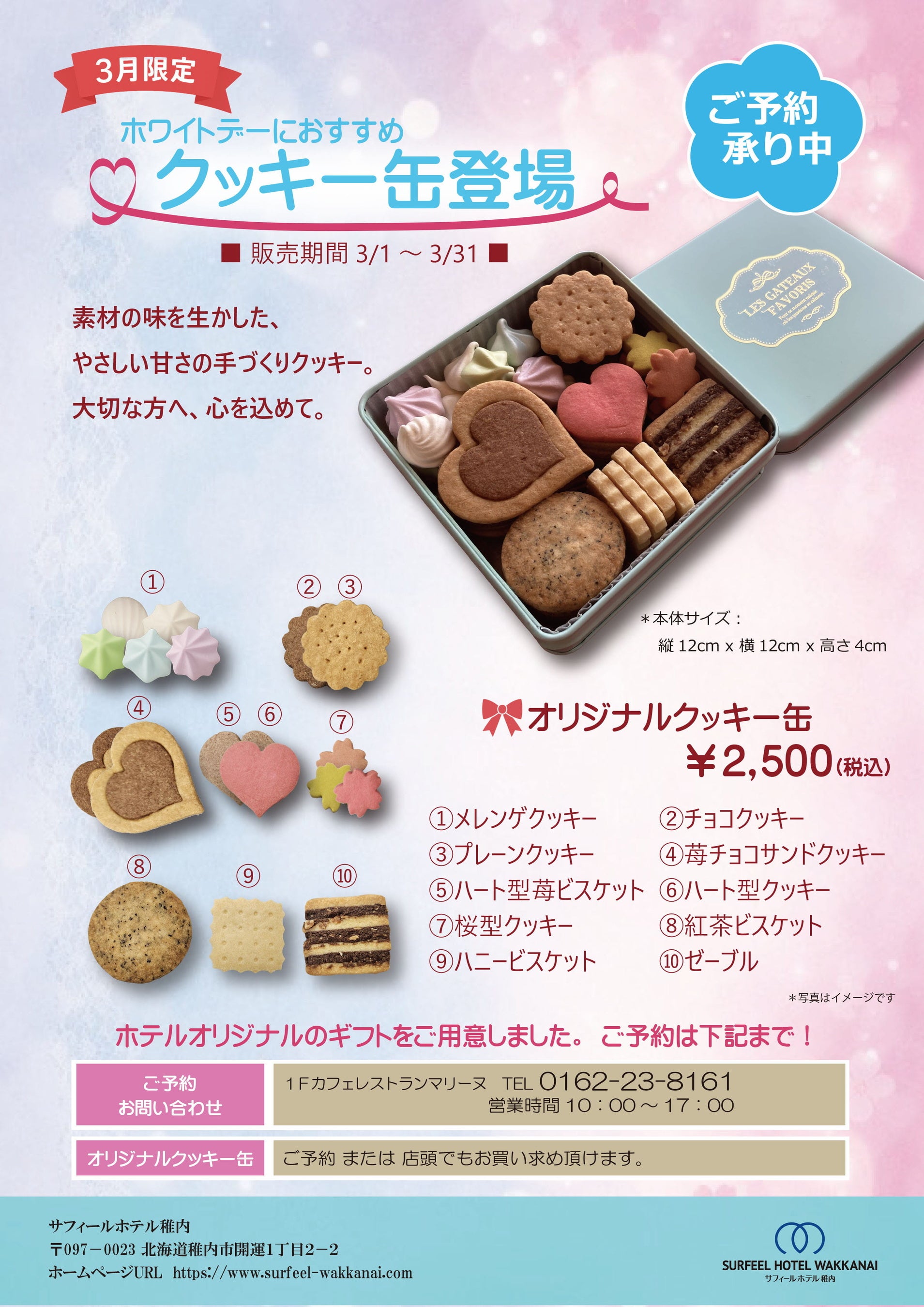 【サフィールホテル稚内】3月限定ホテルオリジナル 「クッキー缶」予約受付スタート!