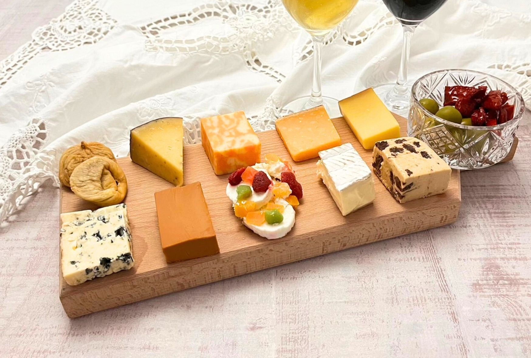 8か国のチーズ&食材(グリーンオリーブやドライイチジクなど)が食べ比べできる全12種類の詰め合わせ。ほとんどが40gずつパックされているので少量でたくさんの種類が味わえます。世界を旅するように、それぞれのチーズと食材を楽しめます。
