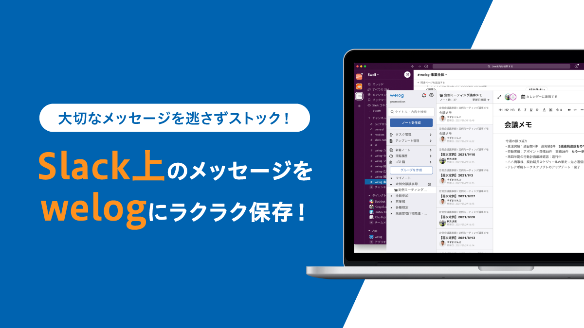 Slackとの連携機能がさらにパワーアップ! 流れてしまうメッセージをSlack上からwelogに逃さず保存!