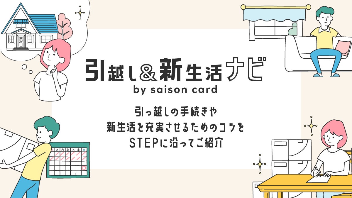 引越しに関する各種申請や手続きの解説、引越しの負荷軽減及び光熱費の見直しサービスなどのご提供、そして新生活に役立つセゾンカード優待をご紹介しています。