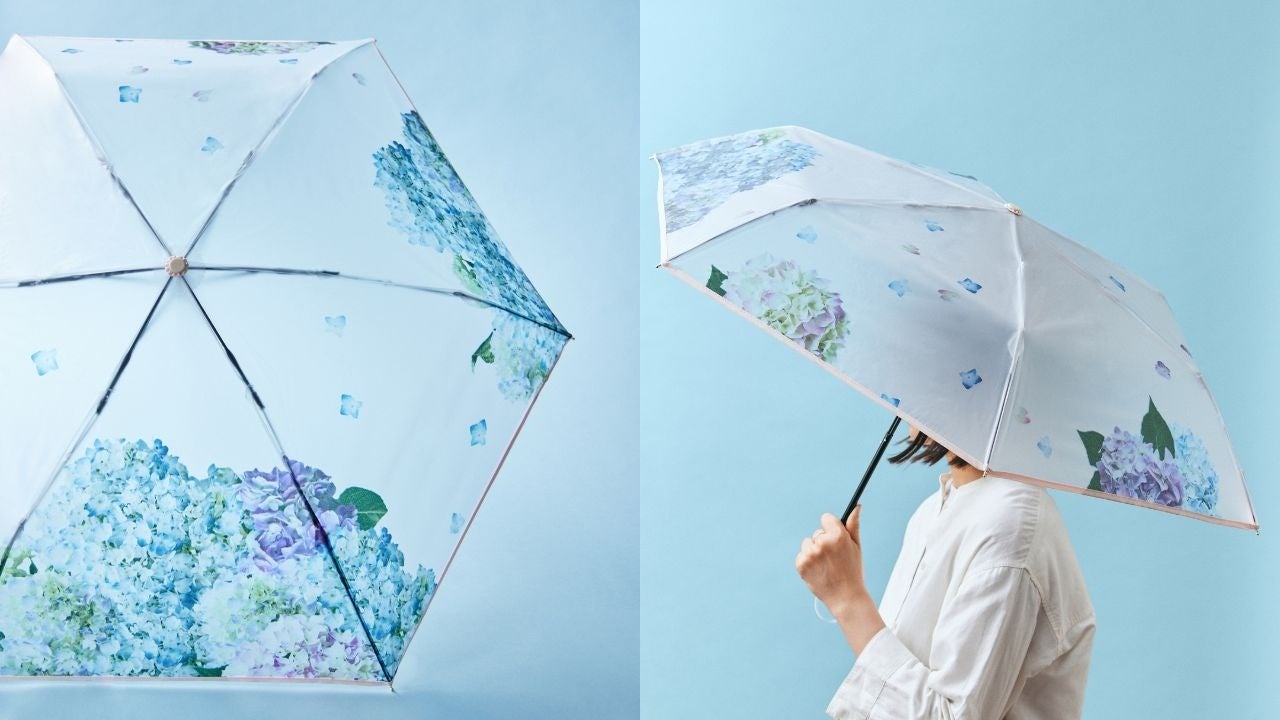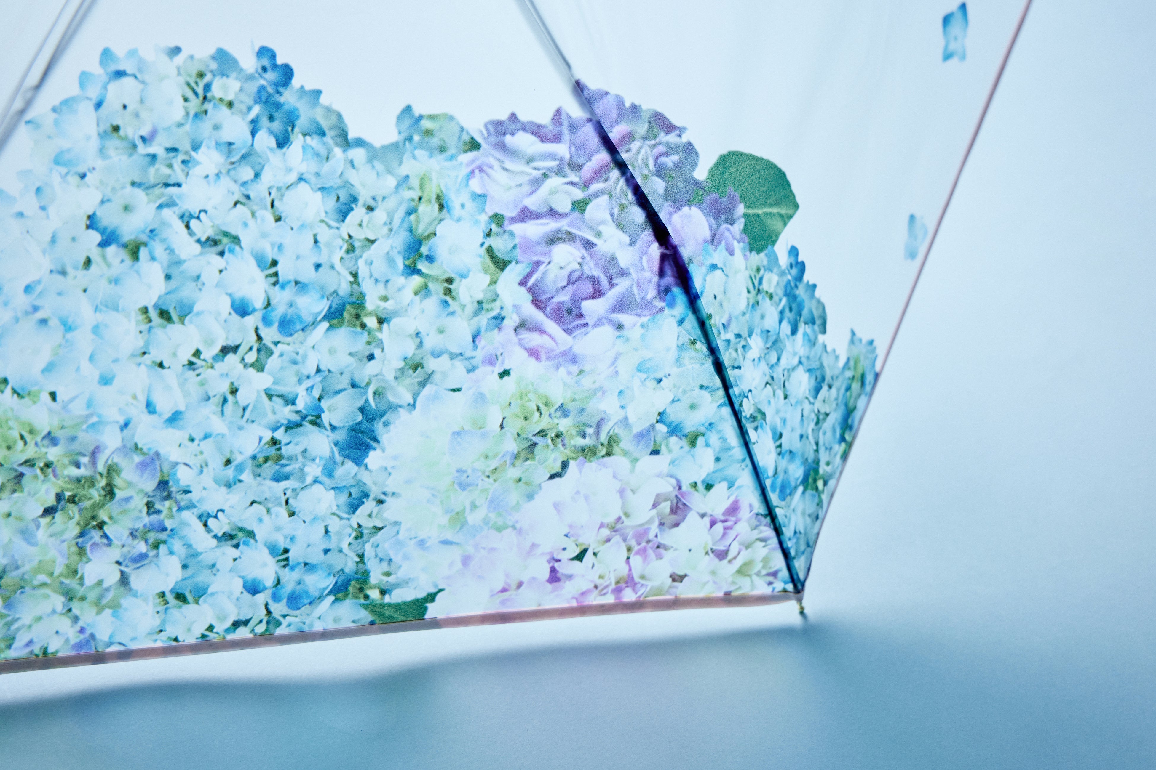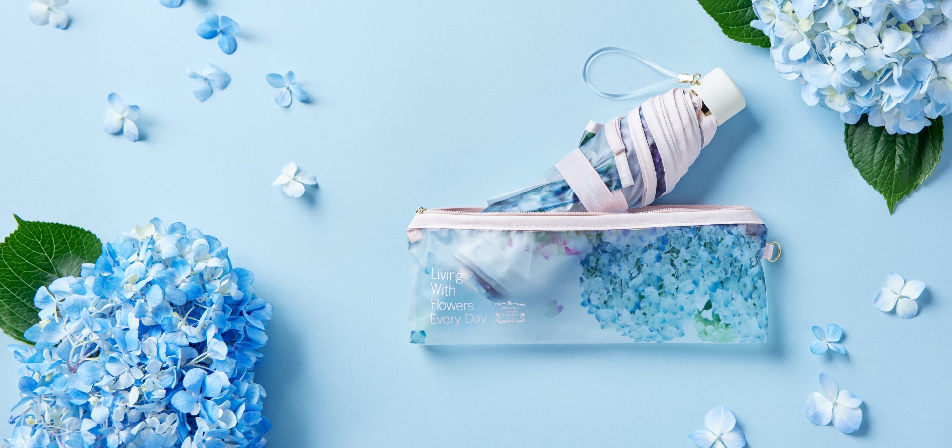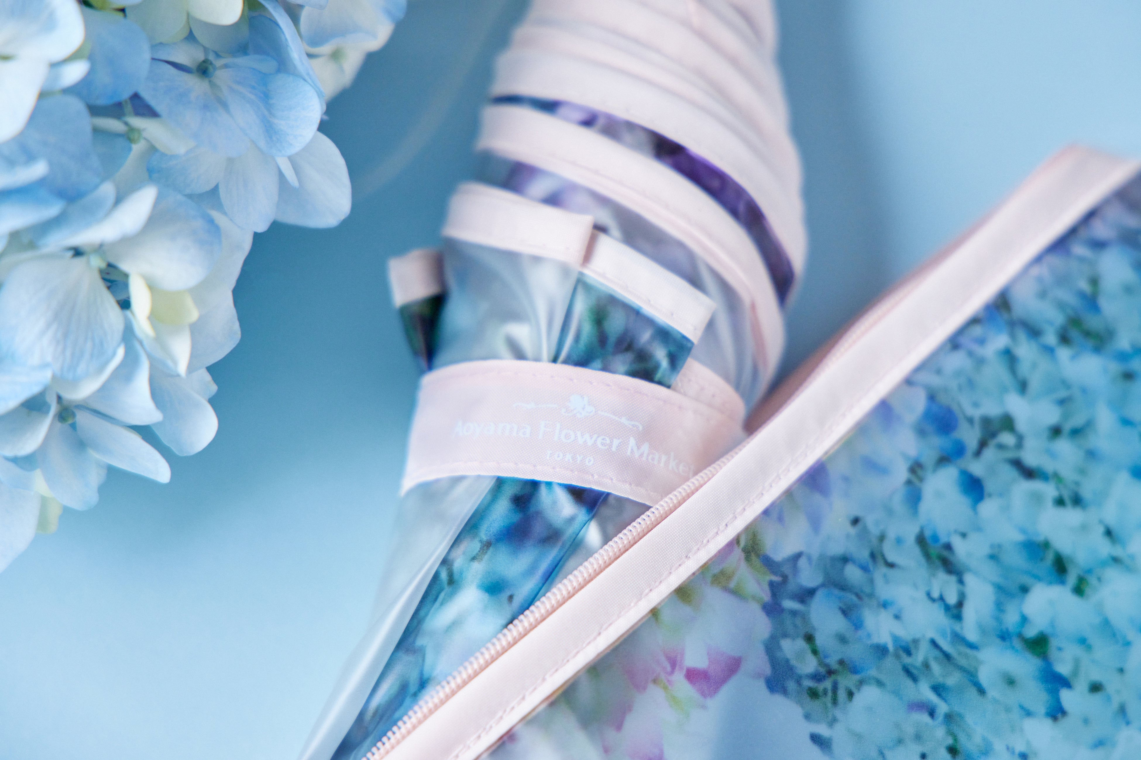 アジサイの旬と青い花祭に合わせて、青山フラワーマーケット初のオリジナル折り畳み傘を数量限定で発売いたします。