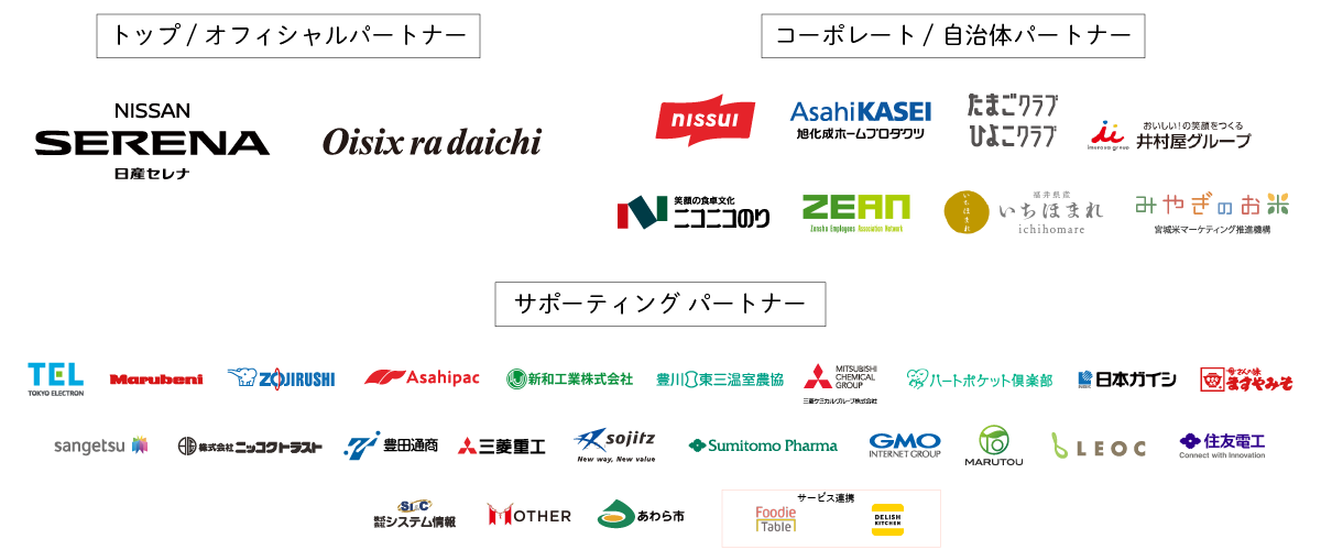本年は、日産セレナ(トップスポンサー)、オイシックス・ラ・大地、日本水産、旭化成ホームプロダクツ、たまごクラブひよこクラブ(初参加)、井村屋グループ、ニコニコのり、ゼンショー従業員組合会ZEAN(初参加)、福井県「いちほまれ」、宮城米マーケティング推進機構(初参加)など国内35の企業・自治体がアクションの趣旨に賛同し、10月6日(木)~11月6日(日)の開催が決定いたしました。