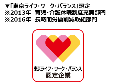 さらに超効率化による“長時間労働の廃止”と、子育てをしながら働くママを支える独自の福利厚生で、育休・産休からの復職率は100%となっています。2013年、2016年には「東京ライフ・ワーク・バランス」認定企業としても表彰を受けています。