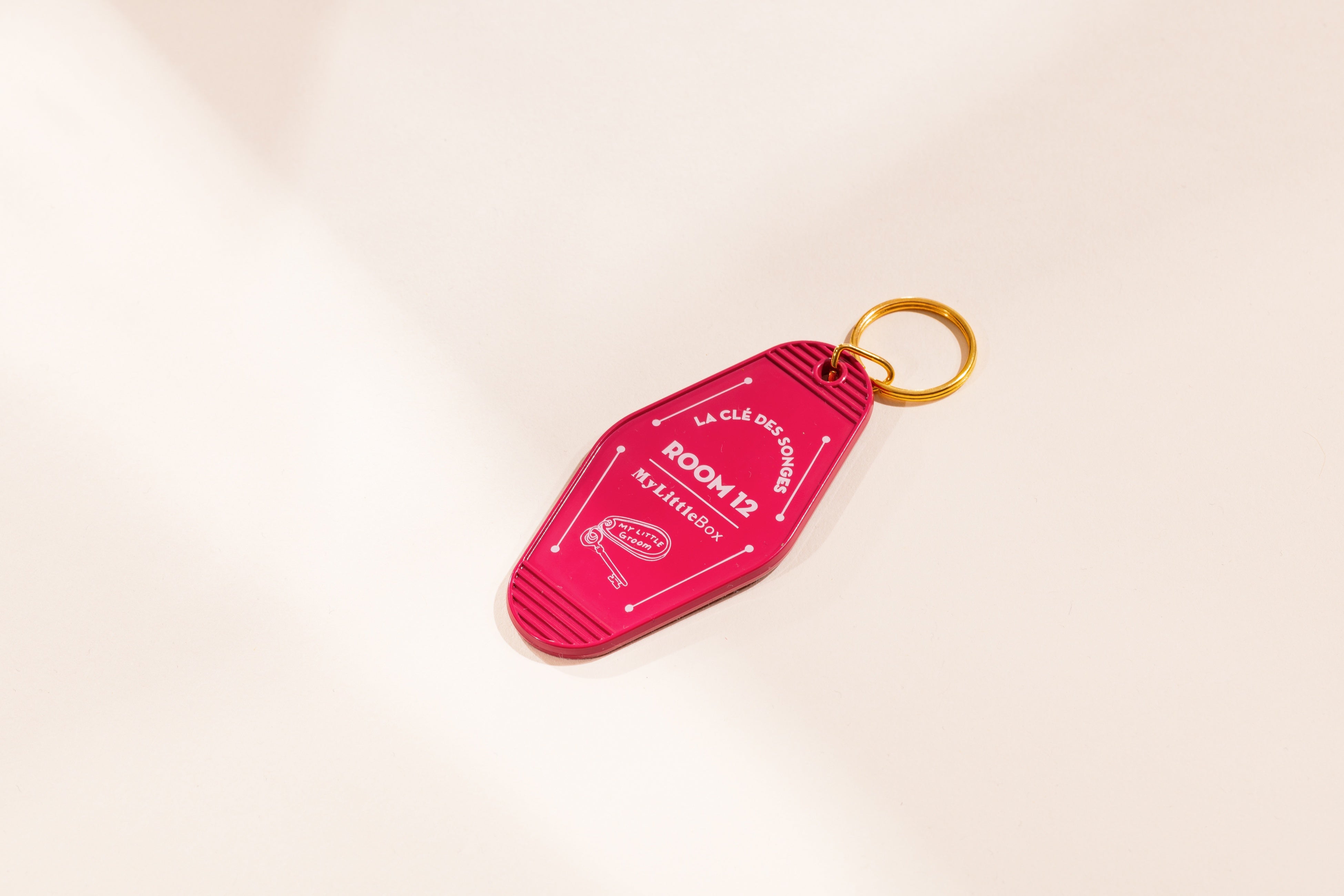 少し大きめサイズに目を引くカラーで、バッグのなかでの迷子を防ぎます。鍵を取り出すたびに心をときめかせてくれる、ホテルのルームキーのようなレトロデザインにも注目です。