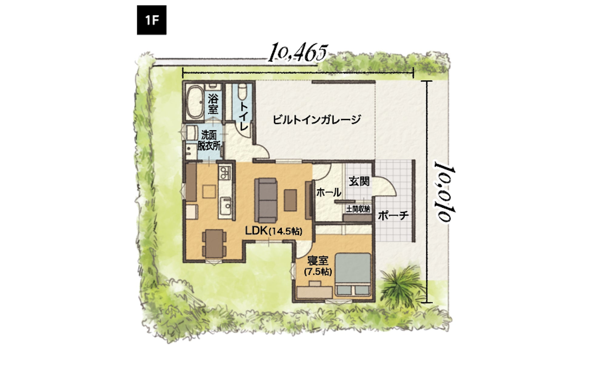 シンプルな中にもこだわりと暮らしやすさを詰め込んだ「Arie」のガレージハウス。リビングから愛車を眺めることのできる、贅沢な間取りが特徴。雨の日でも濡れることなく車の乗り降りができます。生活動線にも配慮した間取りで、コンパクトながら広々とした空間が魅力です。