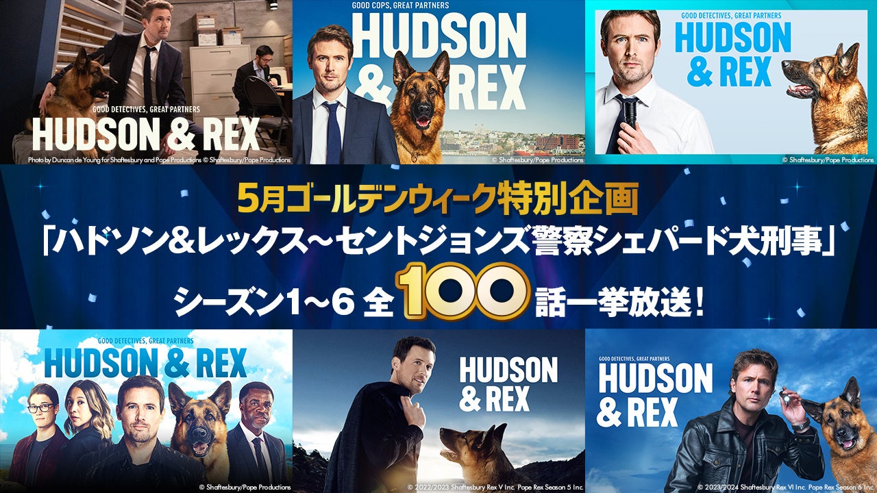 シーズンを重ねるごとに絆を強めていくハドソンとレックスや、ますます魅力が増していく個性豊かなキャラクターたちに虜になること間違いなしの「ハドソン&レックス~セントジョンズ警察シェパード犬刑事」全100話一挙放送を、ゴールデンウィークにアクションチャンネルでどうぞお楽しみください!