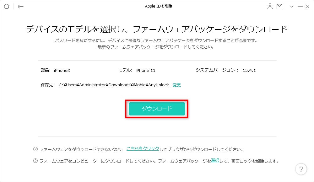 画面の指示に従って、パスコードと 2ファクタ認証がオンになっていることを確認してから、必要なファームウェアをダウンロードします。