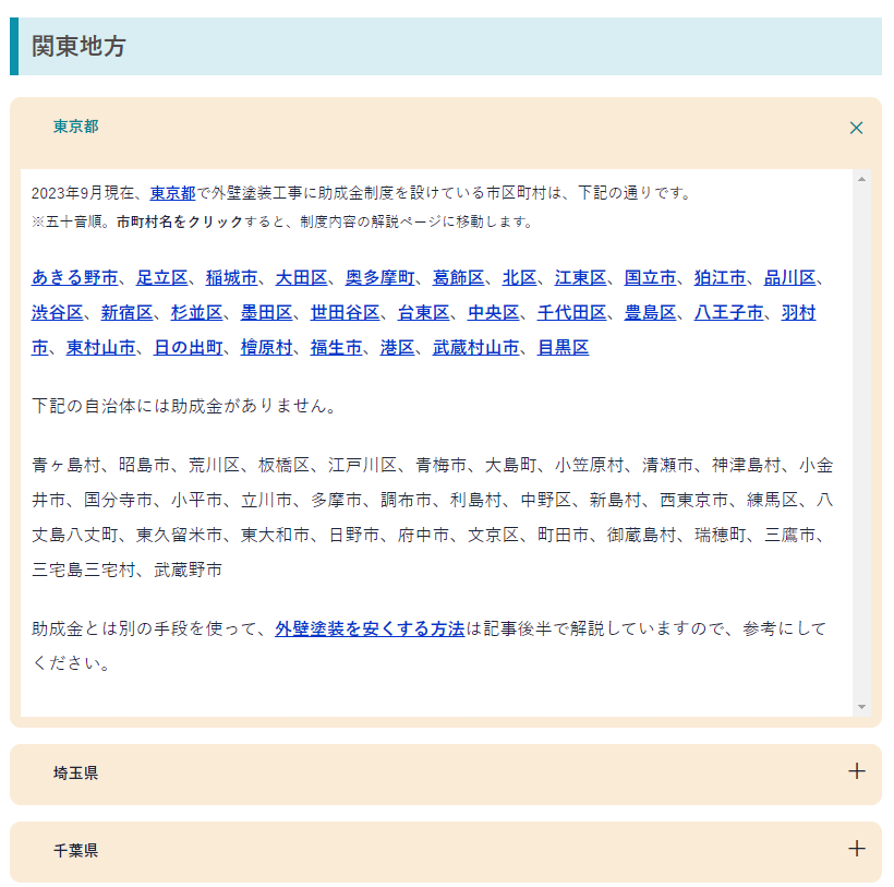 外壁塗装に助成金を設けている自治体の一覧は、下記URLよりご覧ください。
