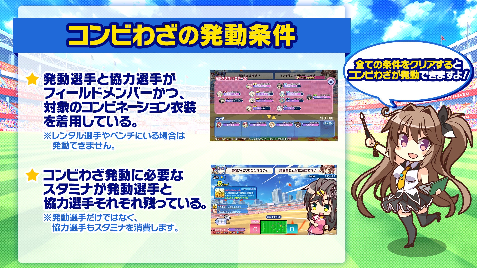 2.コンビわざ発動に必要なスタミナが発動選手と協力選手それぞれ残っている。発動選手だけではなく、協力選手もスタミナを消費します。