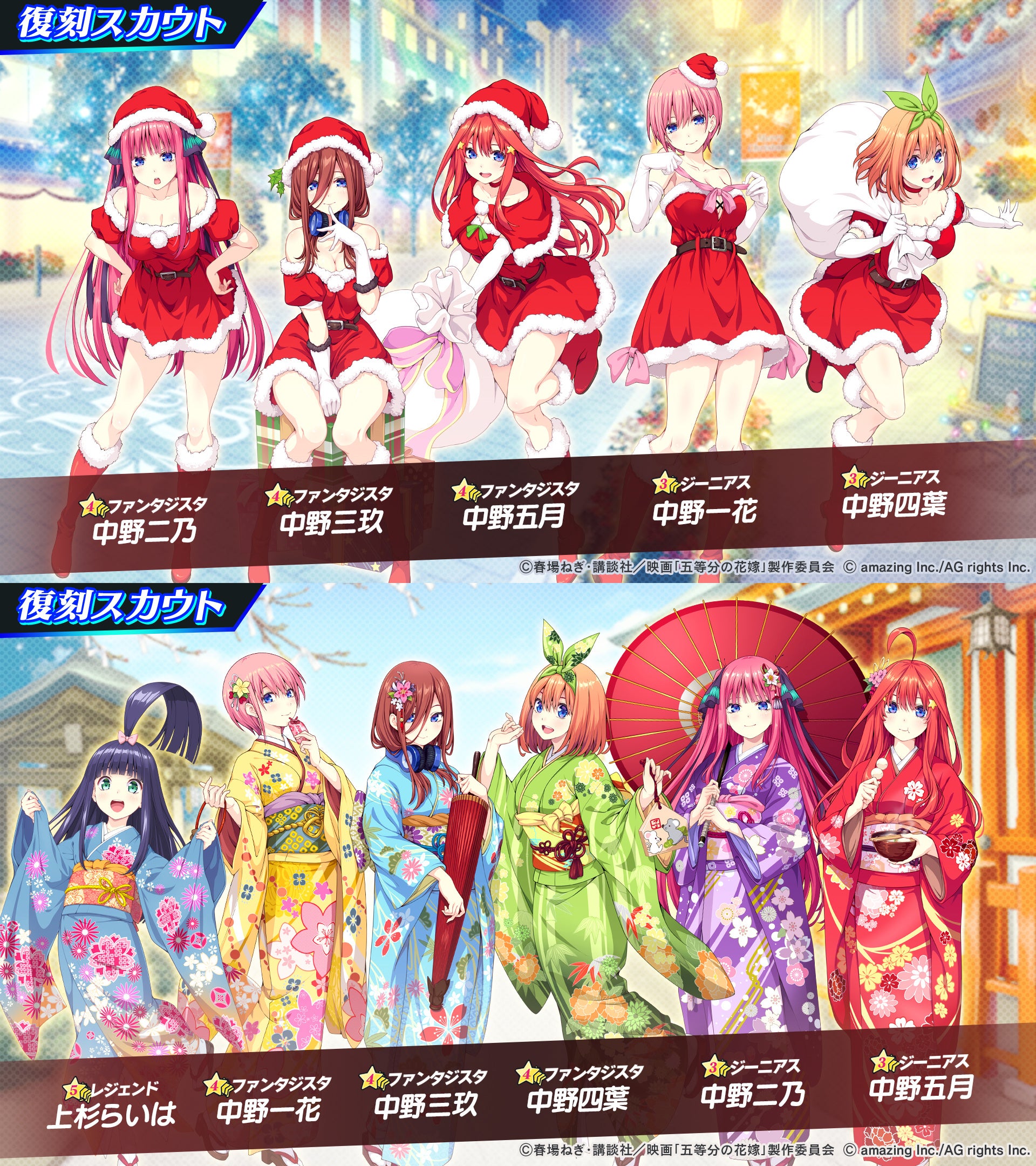 ※「中野一花」が排出されるコンビネーションスカウト、「中野二乃」が排出されるコンビネーションスカウト、「中野四葉」が排出されるコンビネーションスカウトの3種が同時開催されます。