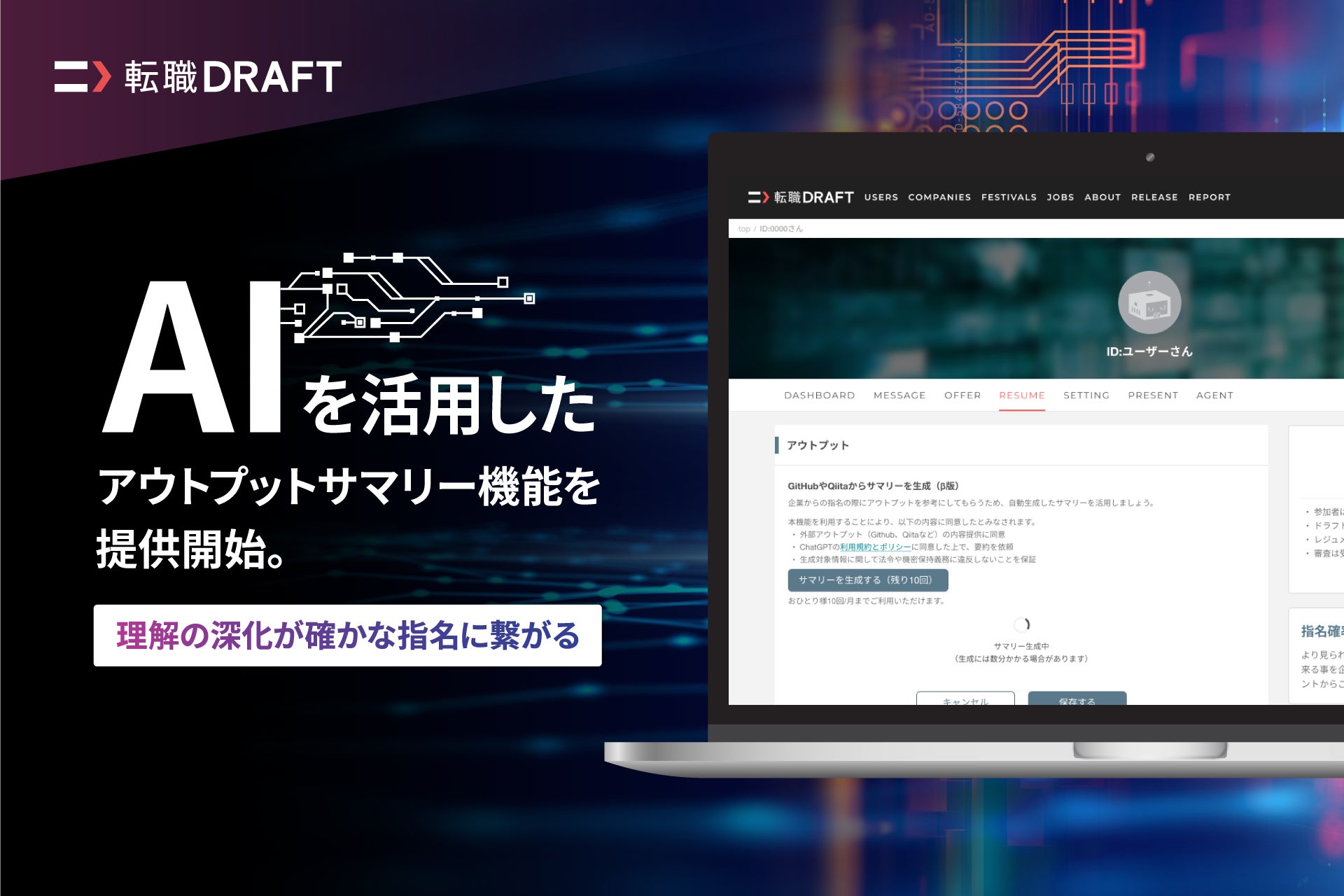 転職ドラフト、ChatGPTを活用したGitHubおよびQiitaのアウトプット要約機能をリリース