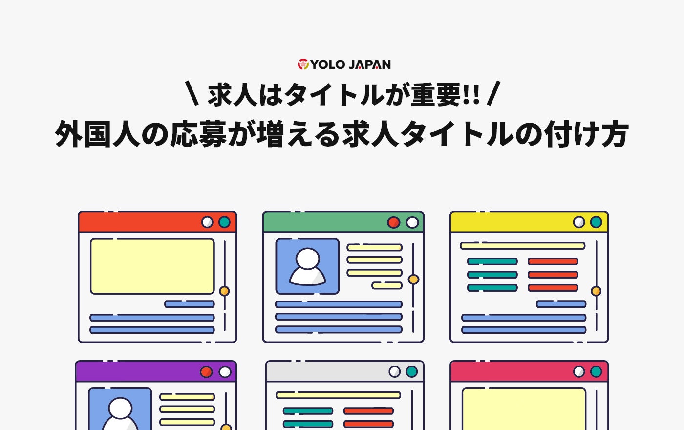 外国人人材が見つかる求人情報サイトを運営するYOLO JAPANは、この度、経営者・採用担当者様向けに「外国人の応募が増える求人タイトルの付け方」を公開しました。