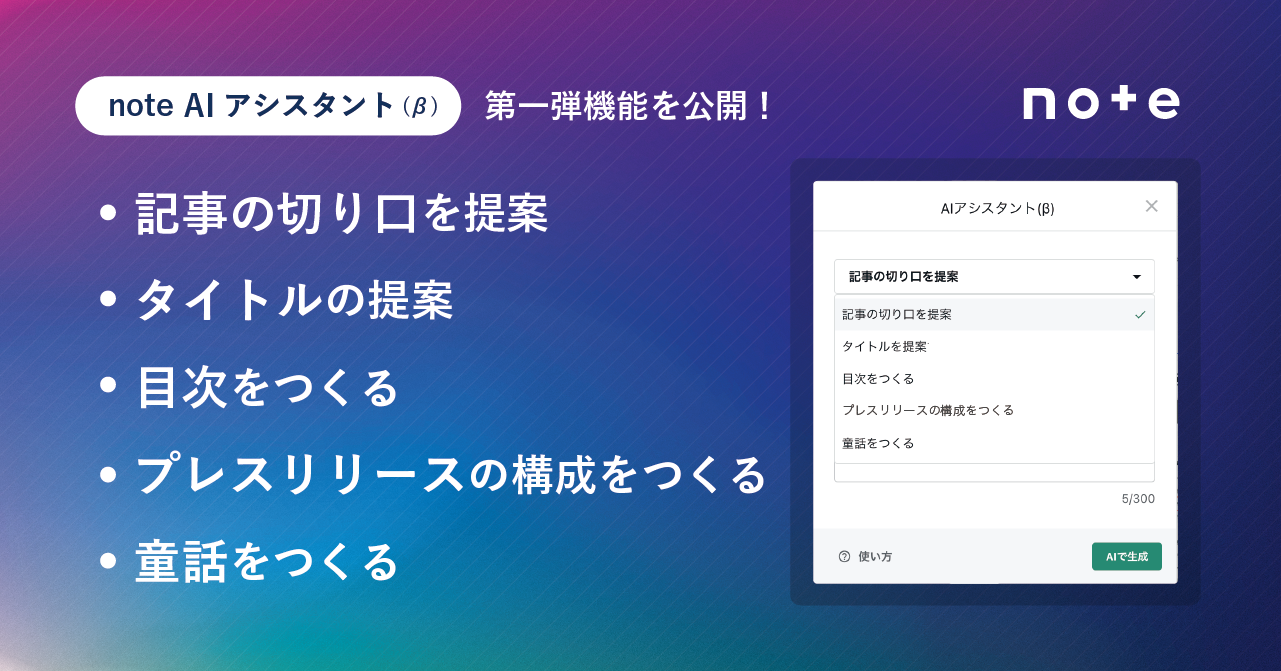 5つの第一弾機能を公開!チャットAIによる創作支援「note AIアシスタント(β)」スタート