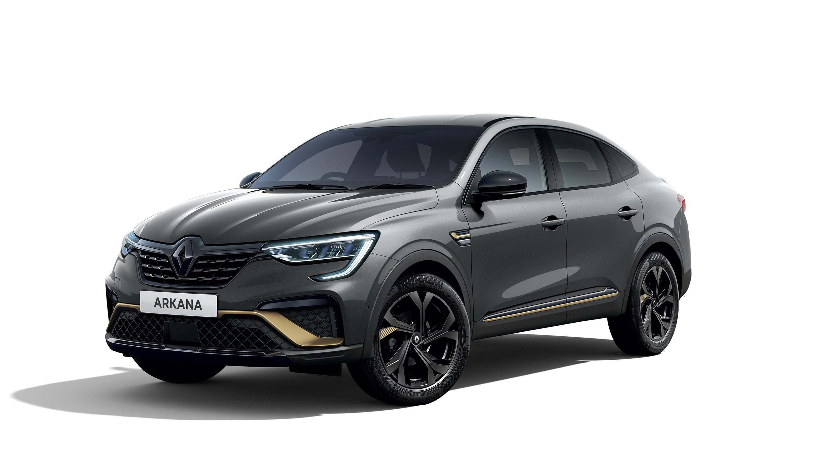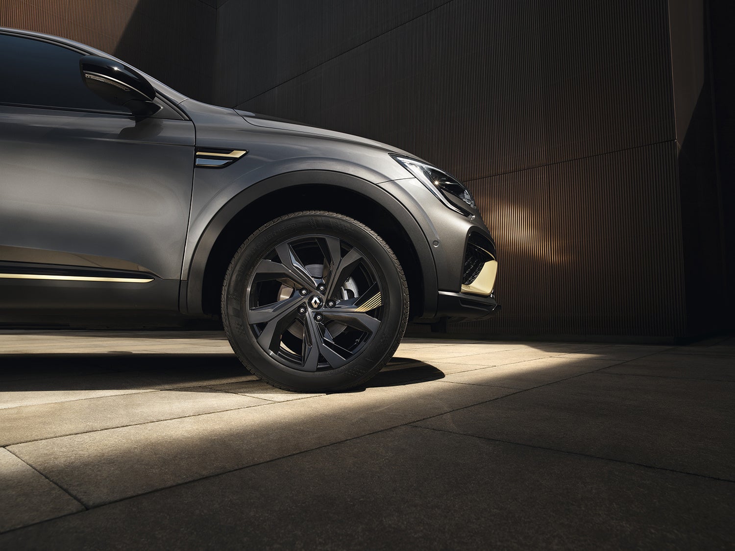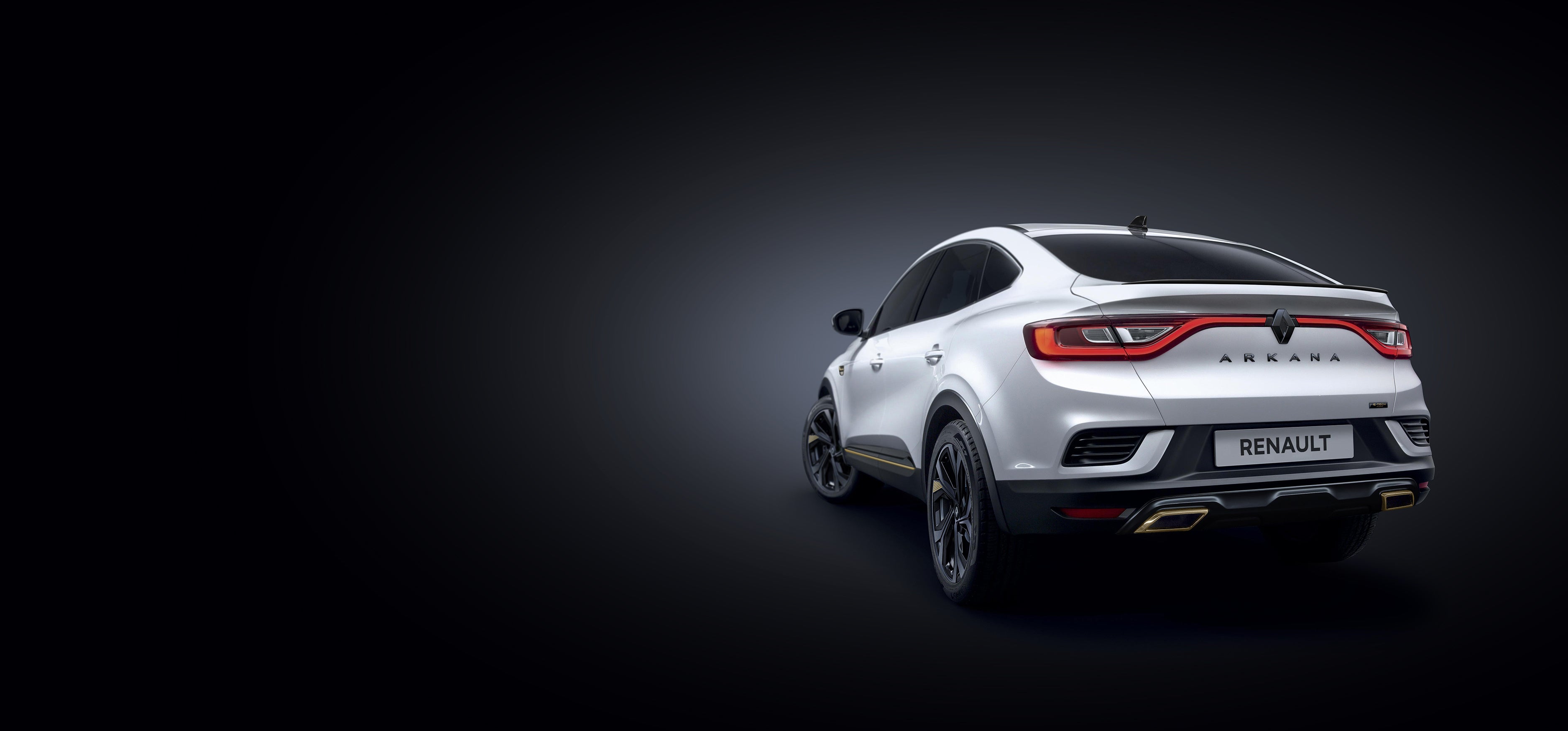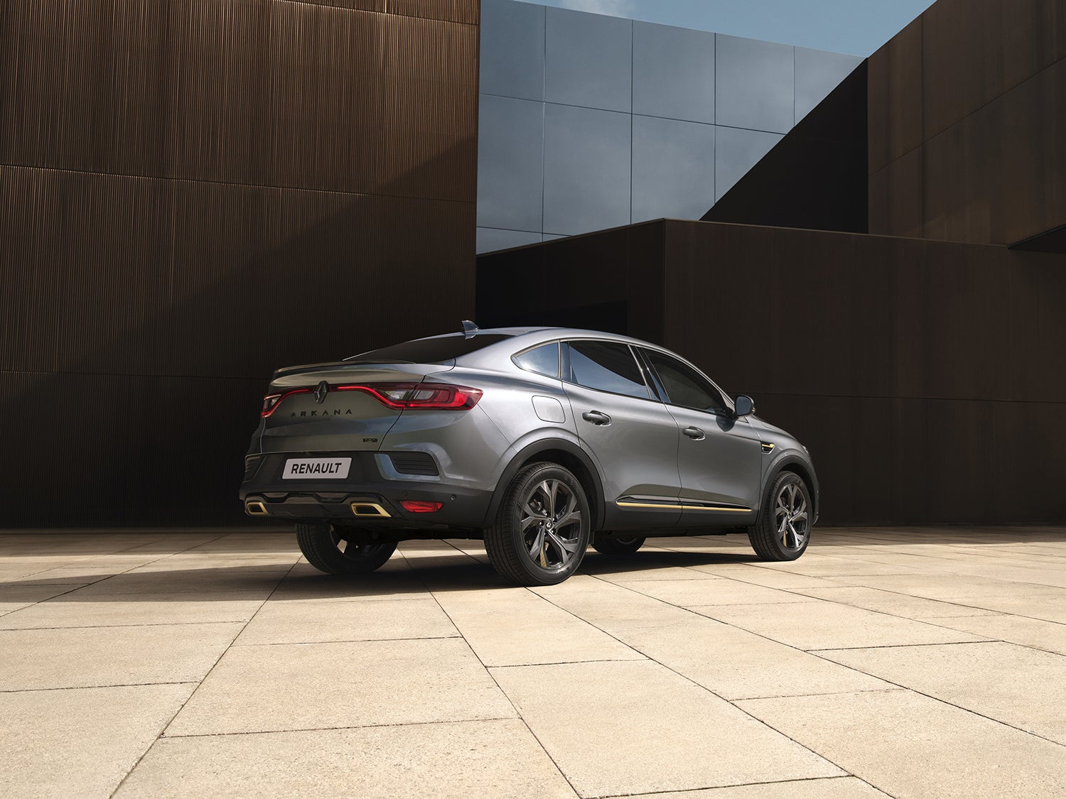 ブリリアントブラックの前後エンブレム・フロントグリルガーニッシュ・スキッドプレート・リアスポイラーと、ウォームチタニウムカラーのF1®ブレード・ツインエキゾーストフィニッシャーが、ルノー アルカナ E-TECH エンジニアードのエクステリアデザインに先進的でエレガントな印象を与えています。