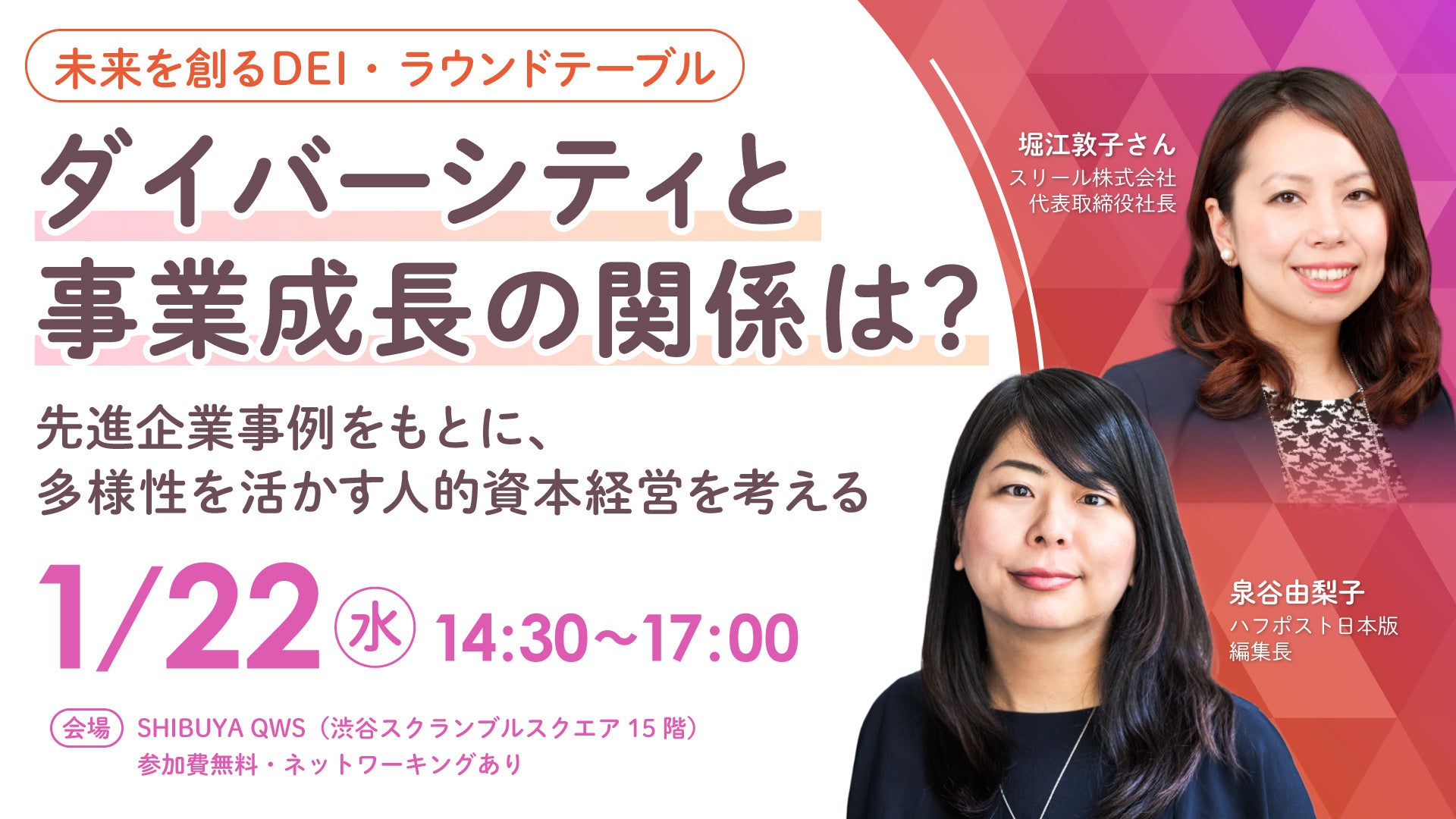 ダイバーシティと事業成長の関係は?先進企業事例をもとに、多様性を活かす人的資本経営を考える【ラウンドテーブル】1月22日(水)に開催