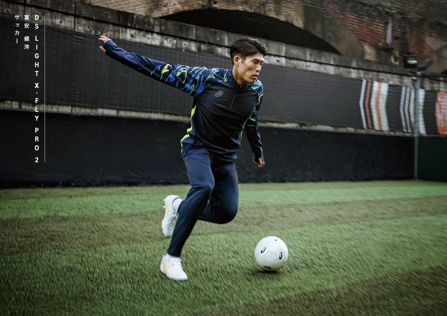 今回発売する商品は、アシックスと契約を結ぶ冨安健洋選手(所属:アーセナルFC)が着用予定のモデルで、優れたフィット性がもたらす「素足感覚」と軽さが人気の「DS LIGHT X-FLY」シリーズの最新作です。