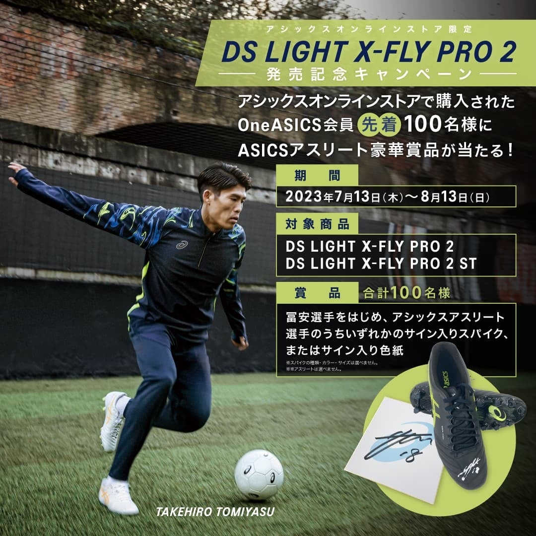賞 品:対象商品を購入いただいたOneASICS会員先着100名様に、冨安選手をはじめ、アシックスアスリート選手のうちいずれかのサイン入りスパイク、またはサイン入り色紙